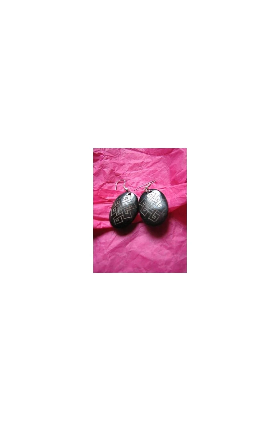 BO7023 Boucle d oreille os de buffle croix tibetaine noire