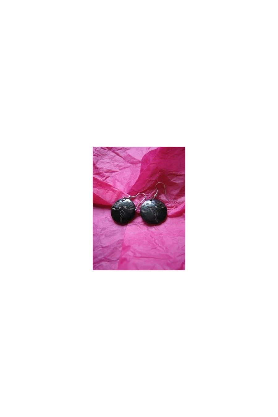 BO7033 Boucle d oreille os de buffle rond yeux de bouddha