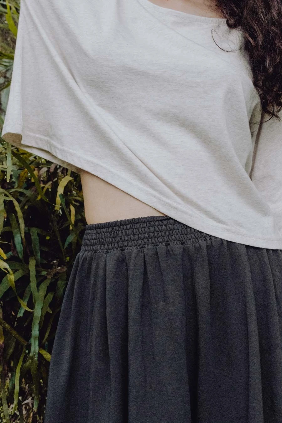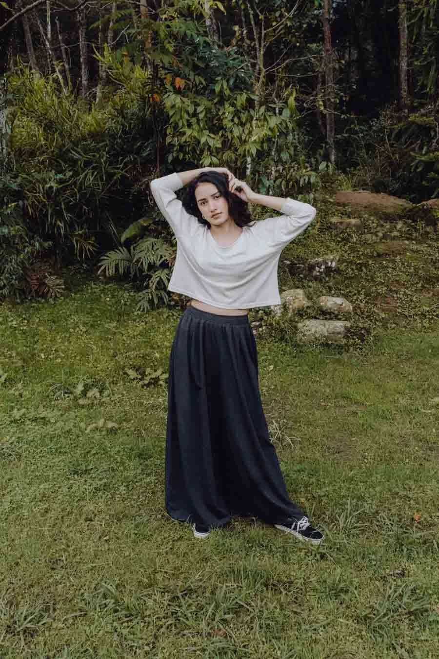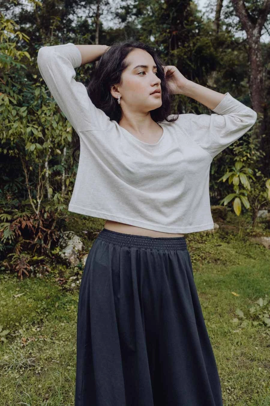 Ce modèle est porté avec le Crop-top sweat léger coquillage BATYA.
