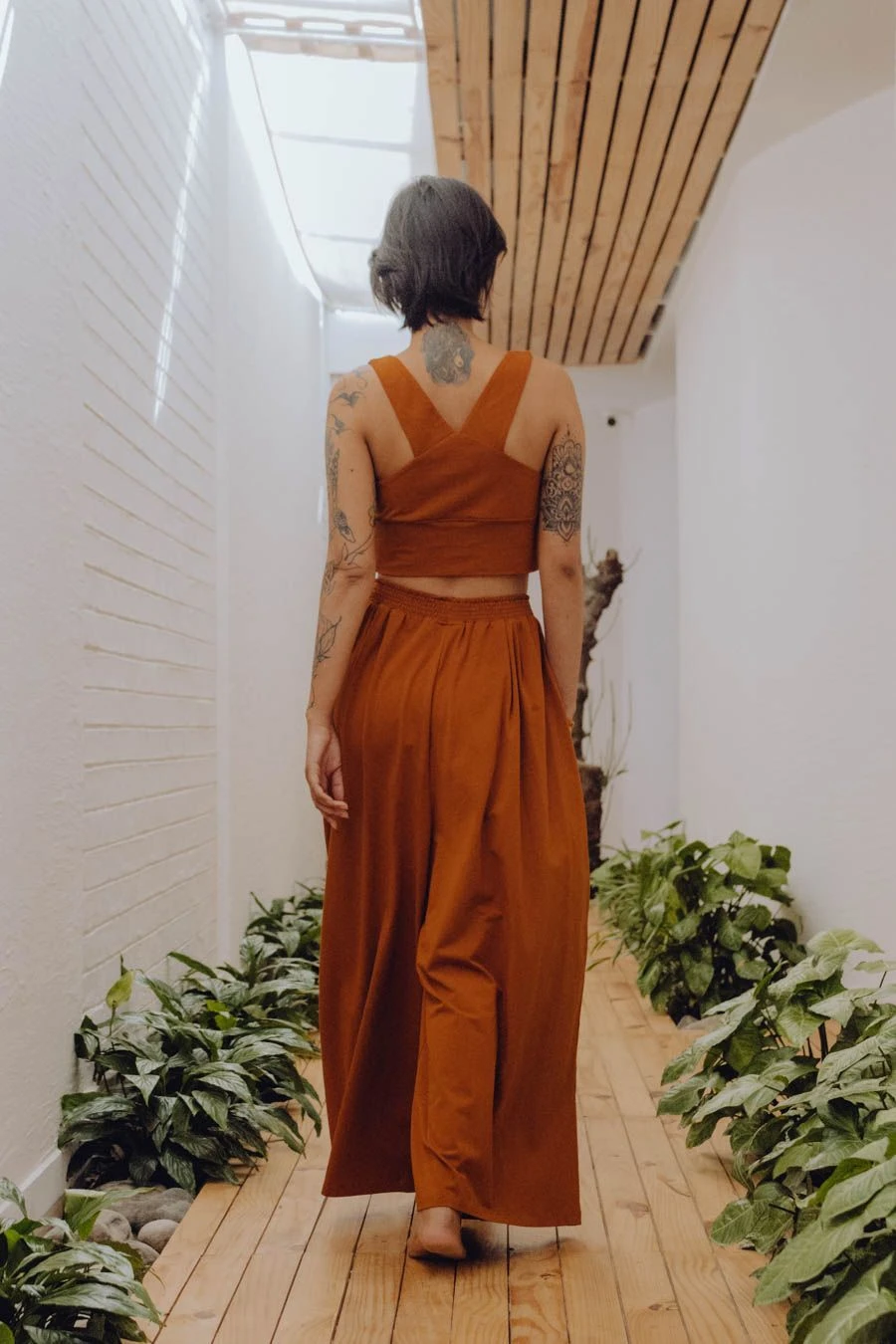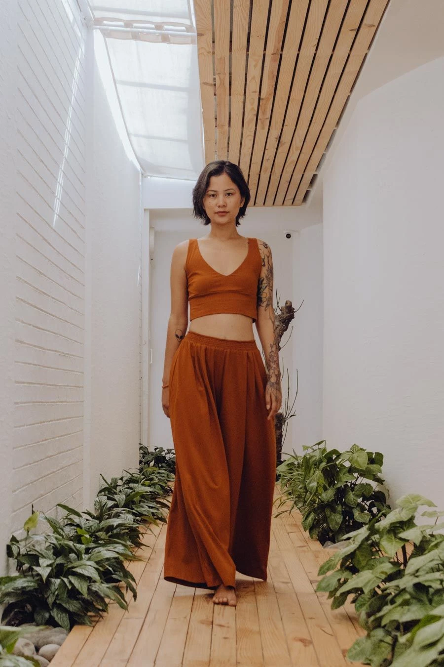 Une couleur chaude et rassurante qui convient à toutes les carnations, une coupe ample et fluide qui ravit toutes les morphologies, ce pantalon large femme en jersey stretch de coton bio GOTS vous accompagnera dans toutes vos envies au quotidien : yoga, chill ou chic, laissez-vous aller à sa douceur pour une harmonie parfaite entre charme et volupté.