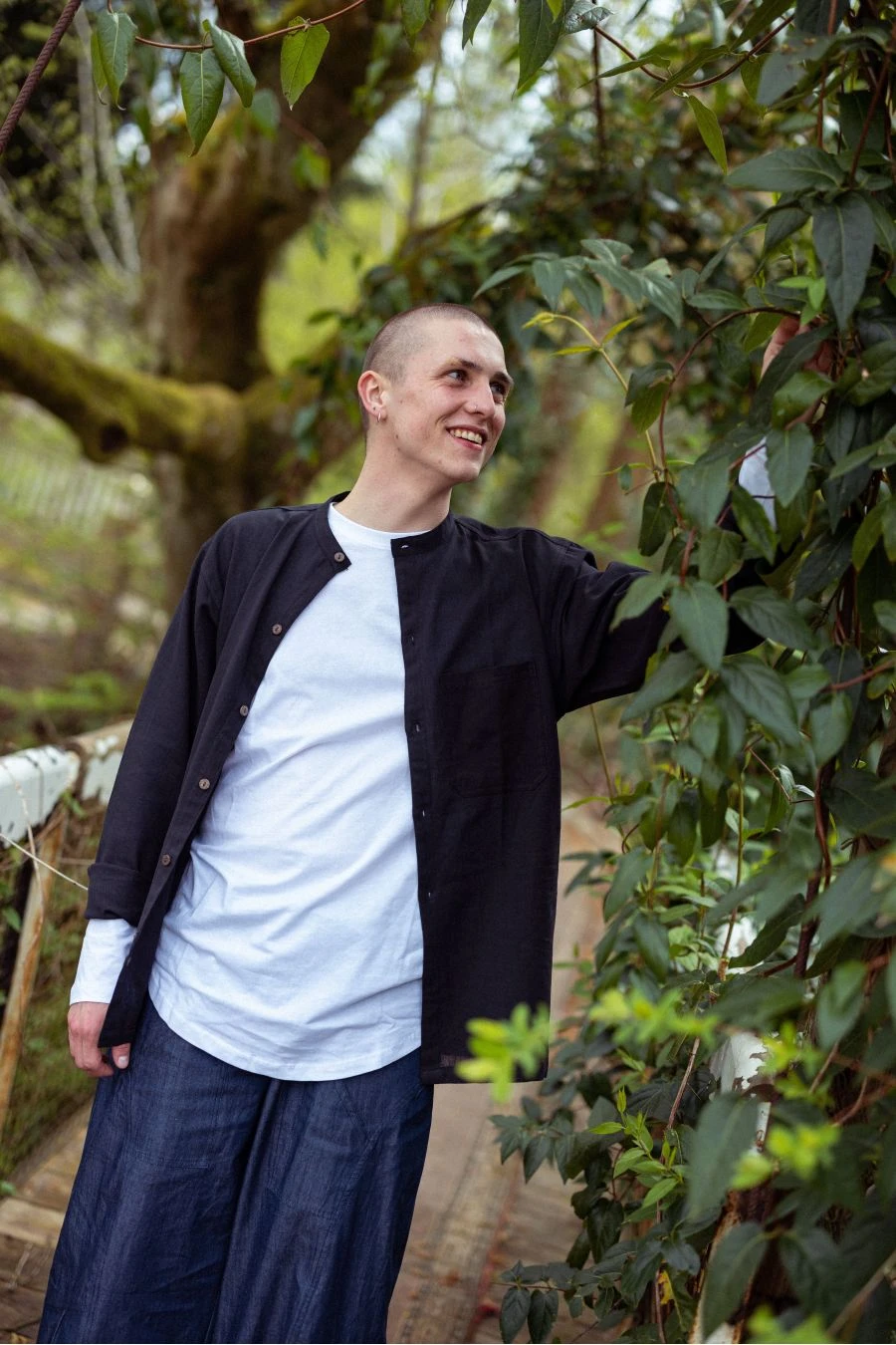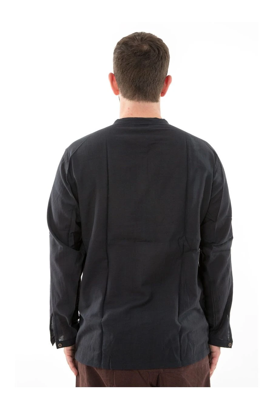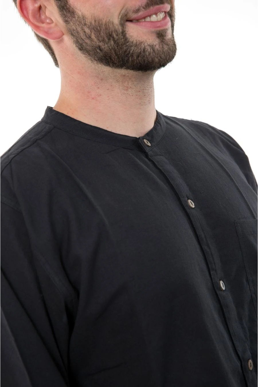 Chemise coton lĂ©ger noir boutons noix de coco Harree – K55 – 100% pur coton lĂ©ger du NĂ©pal.
