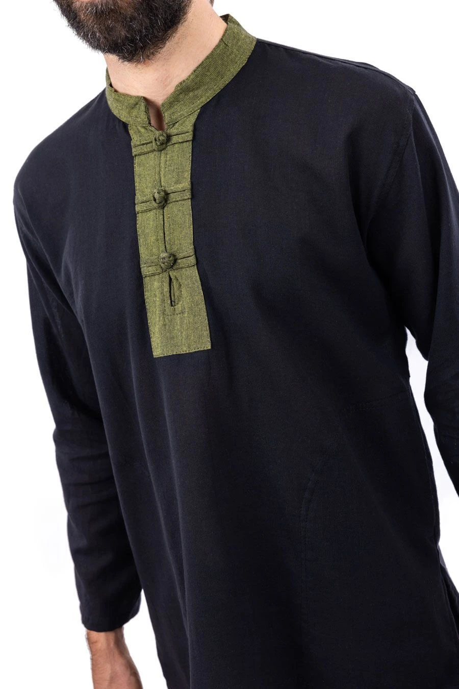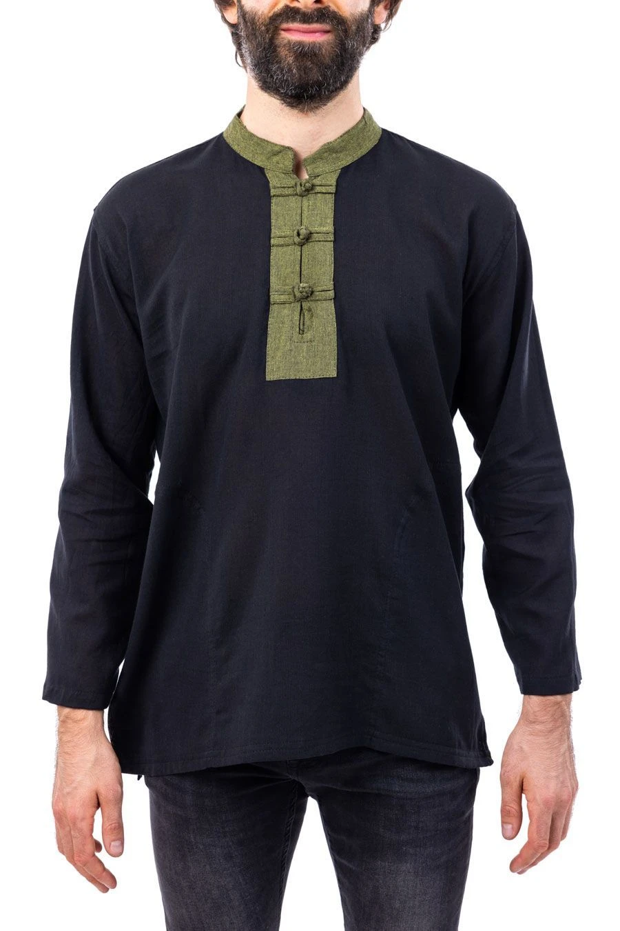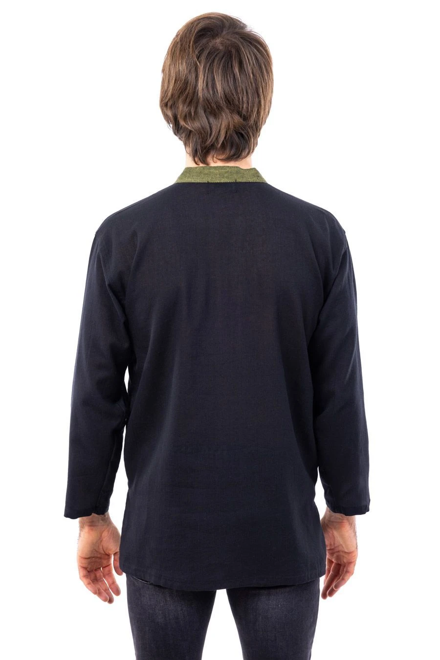 Chemise homme bicolore Senseh – K3826 – 100% pur coton khadar léger et doux du Népal tissé comme du lin.