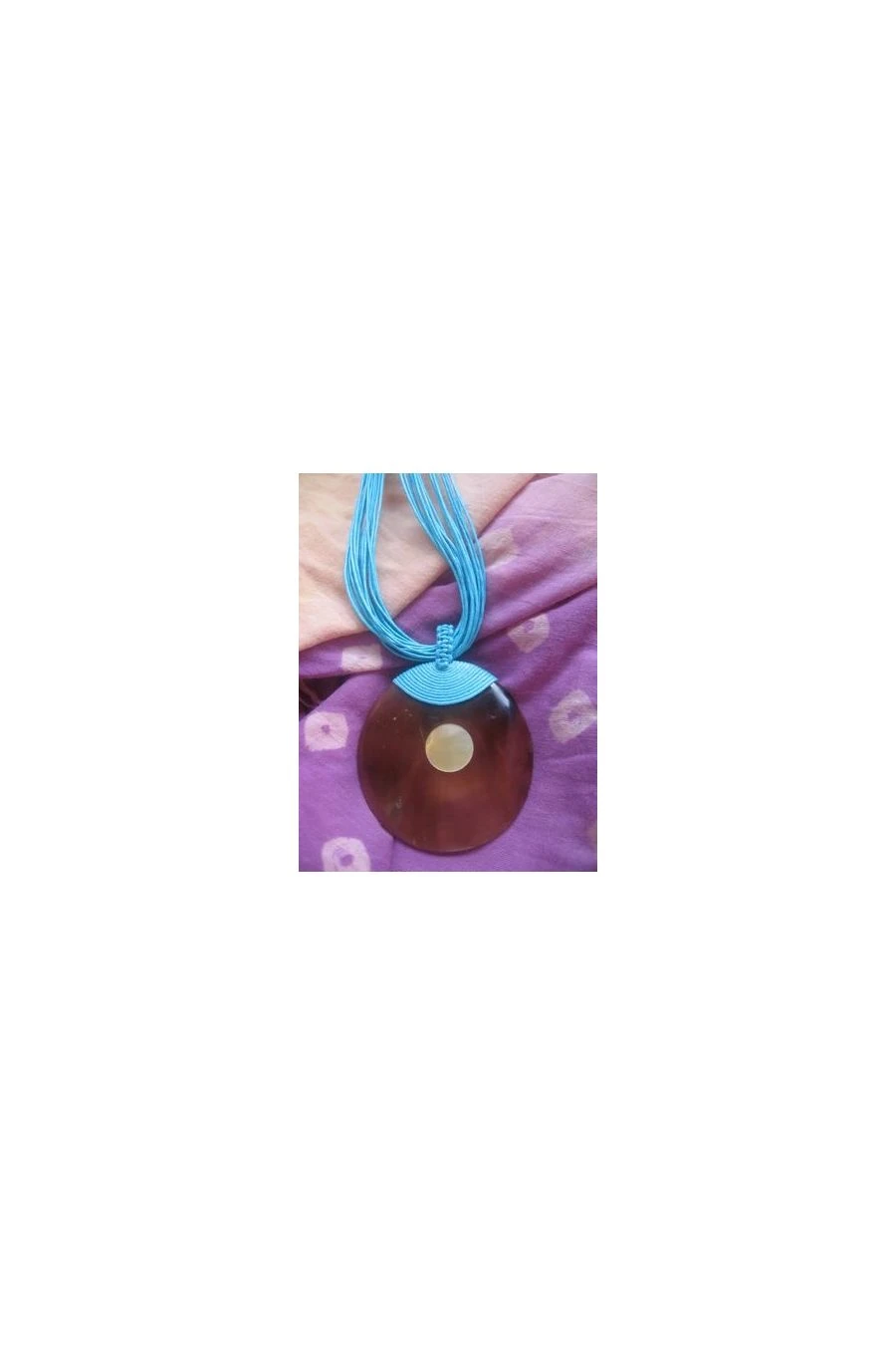 CO311 collier tranche coquillage et rond de bois certi fils de coton