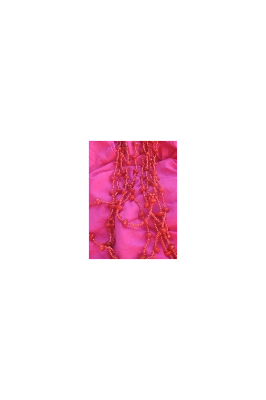 Collier triple sautoir graine de Coprah rouge et perles de verre rouges – CO500.