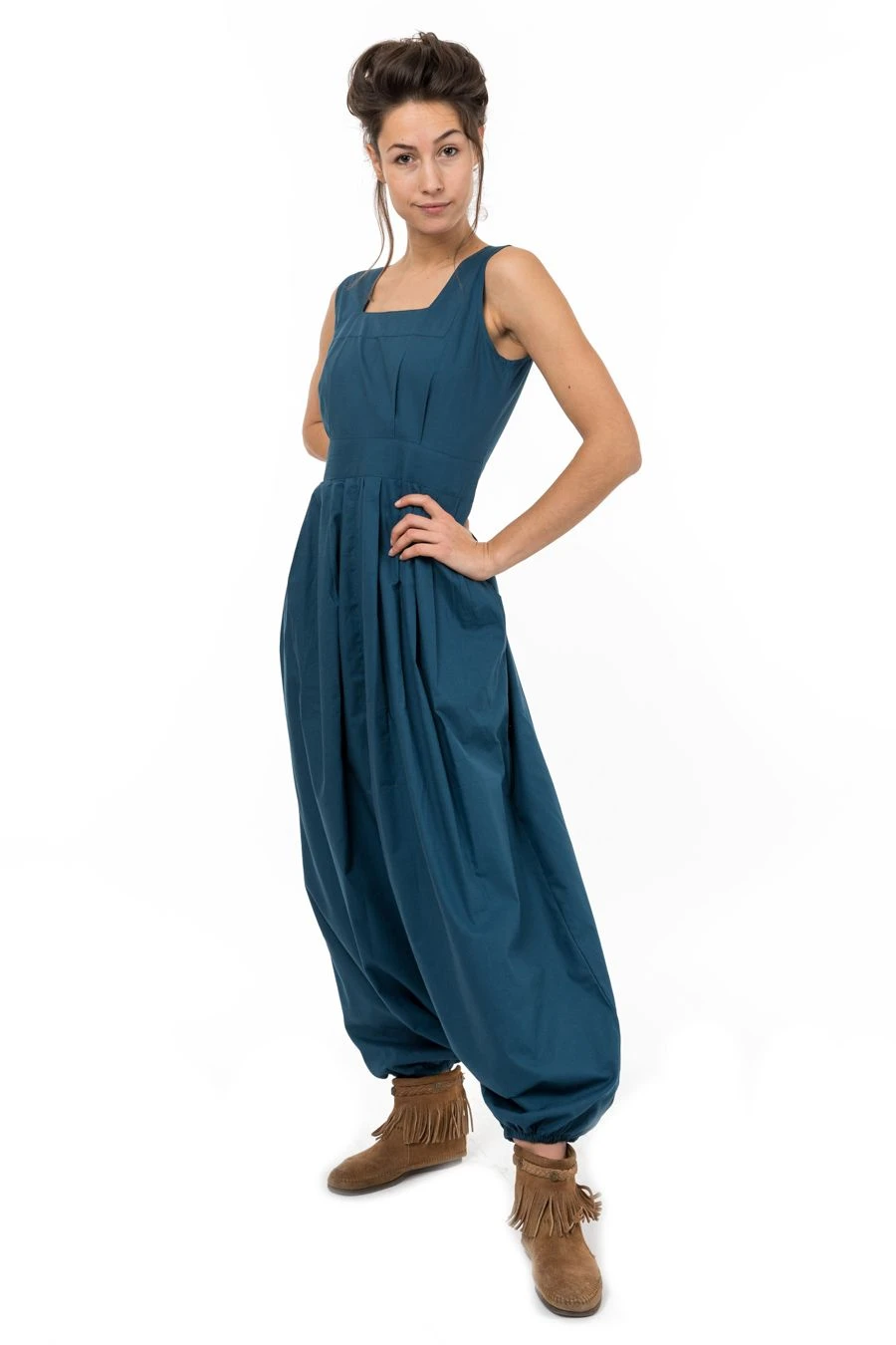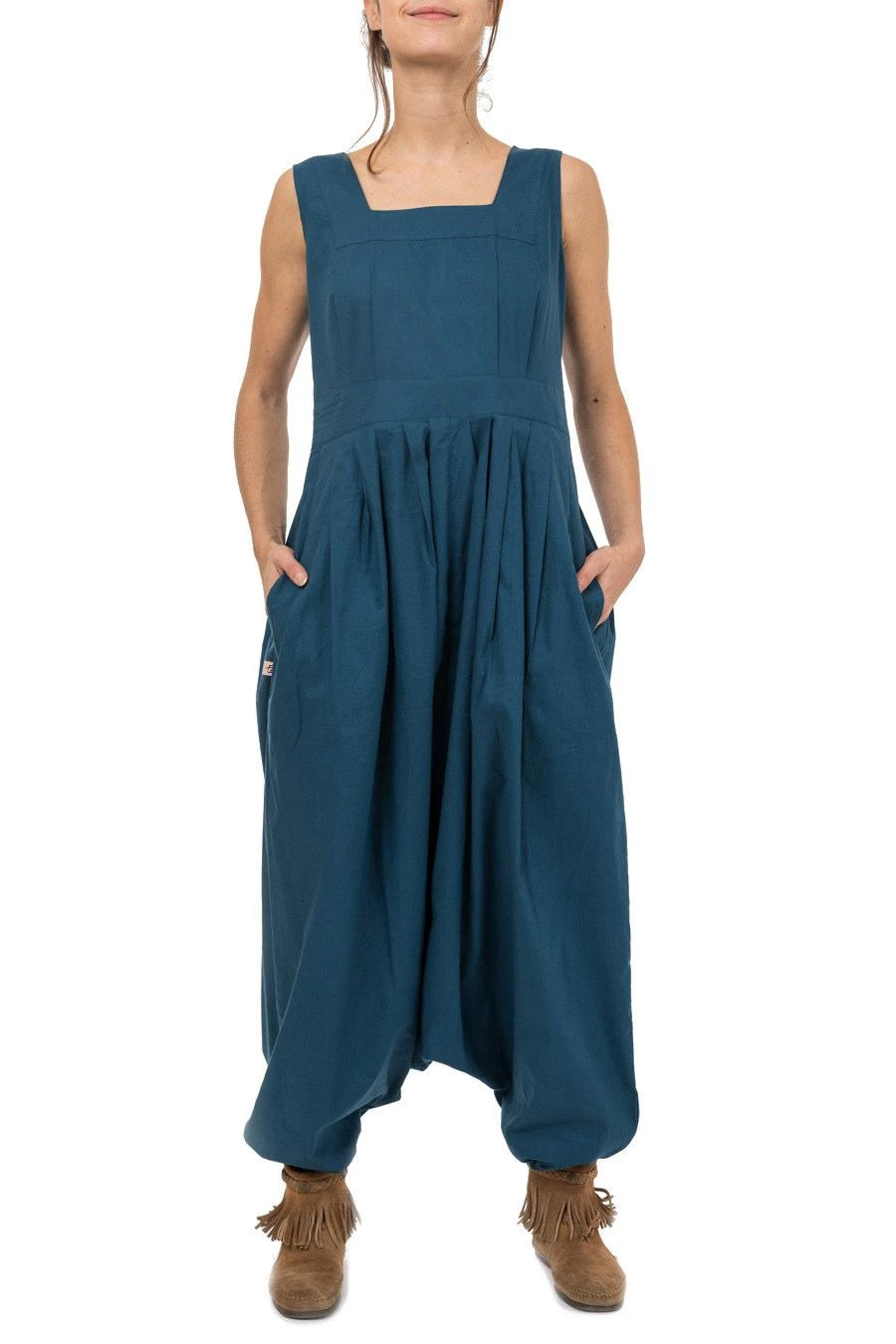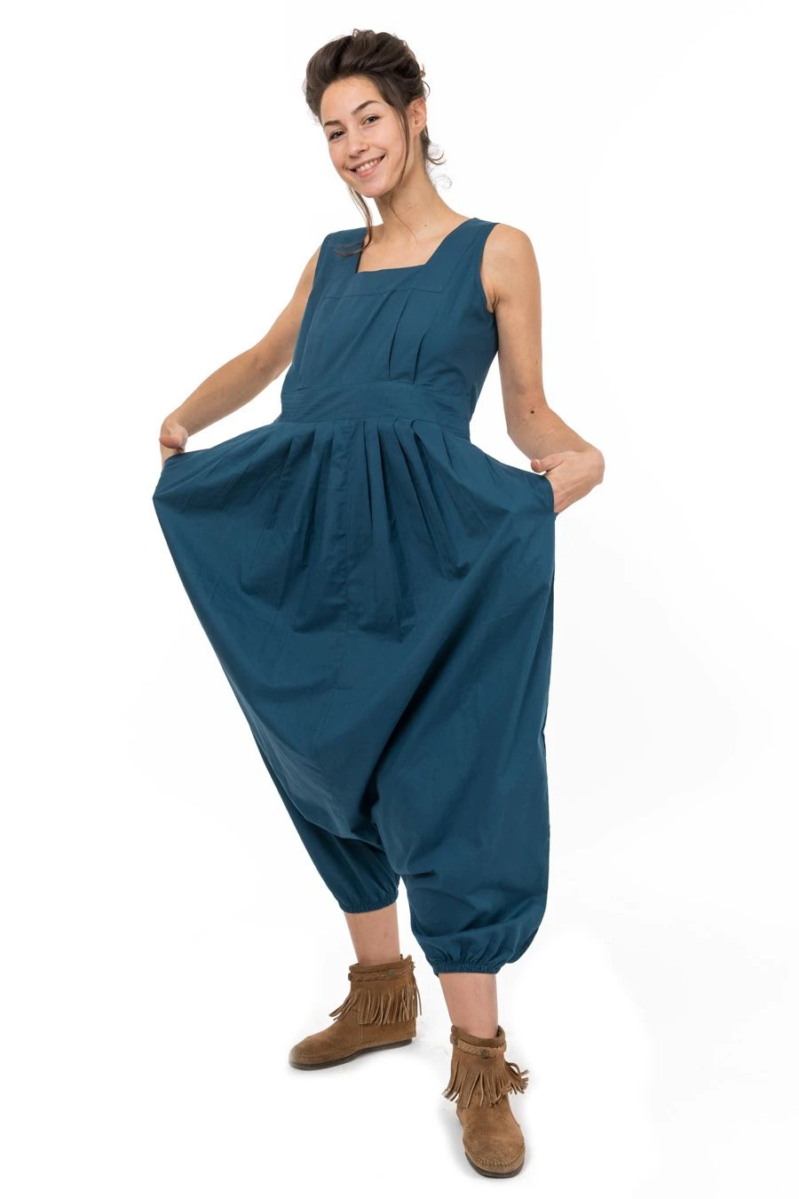 Combi sarouel femme chic fourche basse petrol blue Chala – FZ2620 – 100% pur coton popeline doux et léger du Népal.