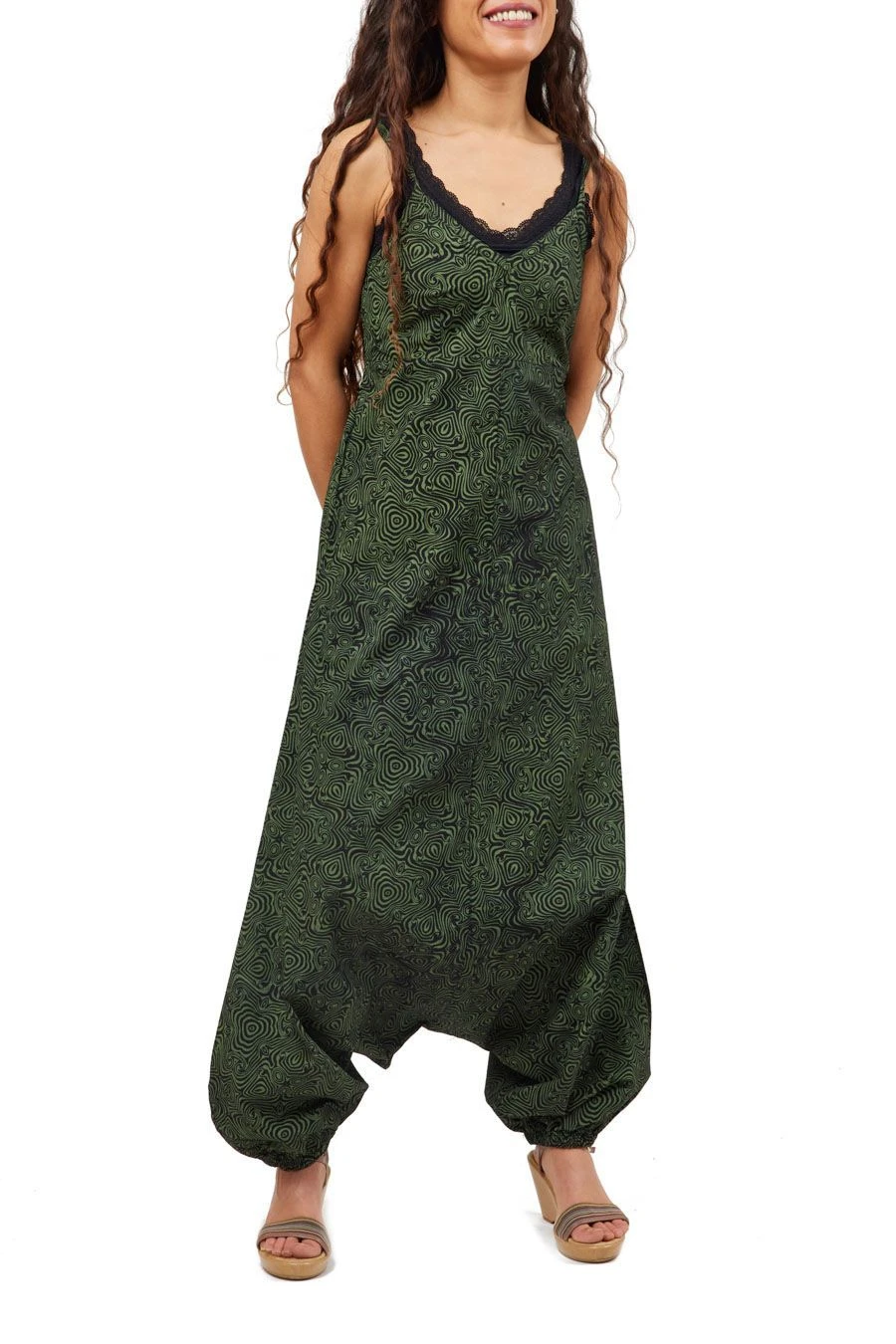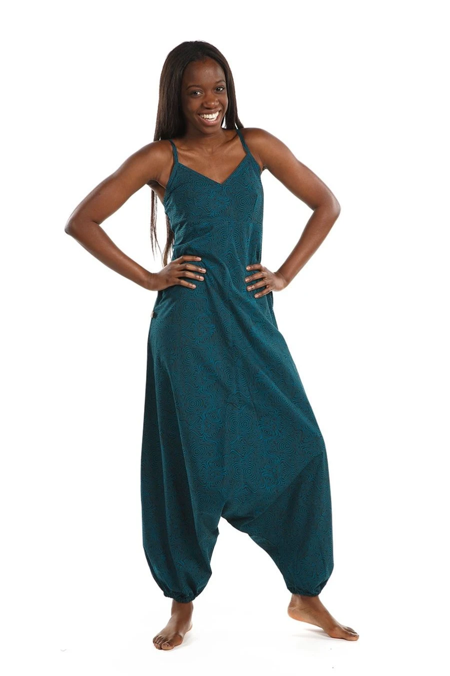 Cette combinaison sarouel originale mettra en valeur votre féminité et votre côté ethnique psychédélique avec son imprimé coloré. Facile à enfiler et confortable au porter, elle s’adapte bien grâce aux chevilles élastiquées, au dos smocké extensible et aux bretelles réglables.