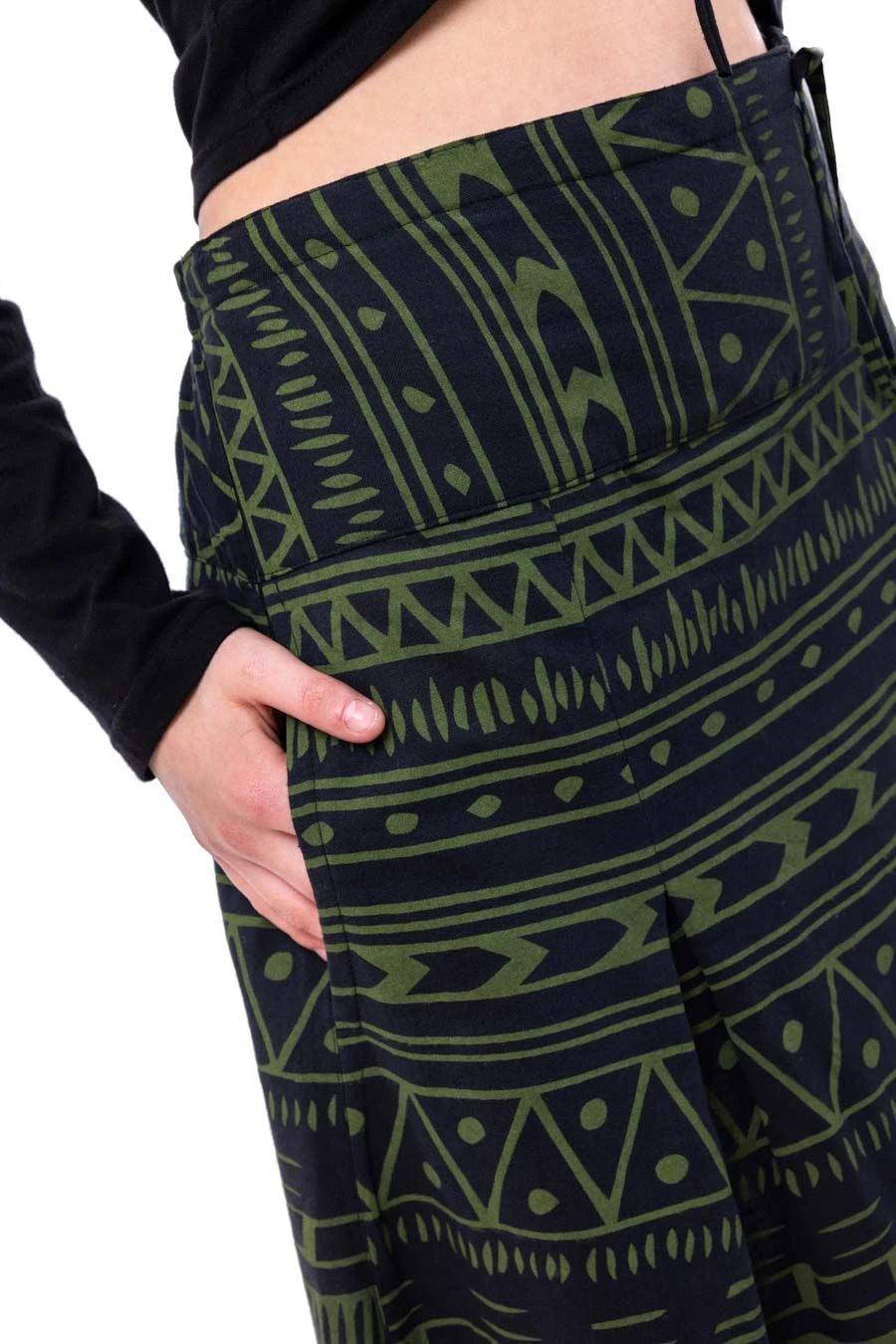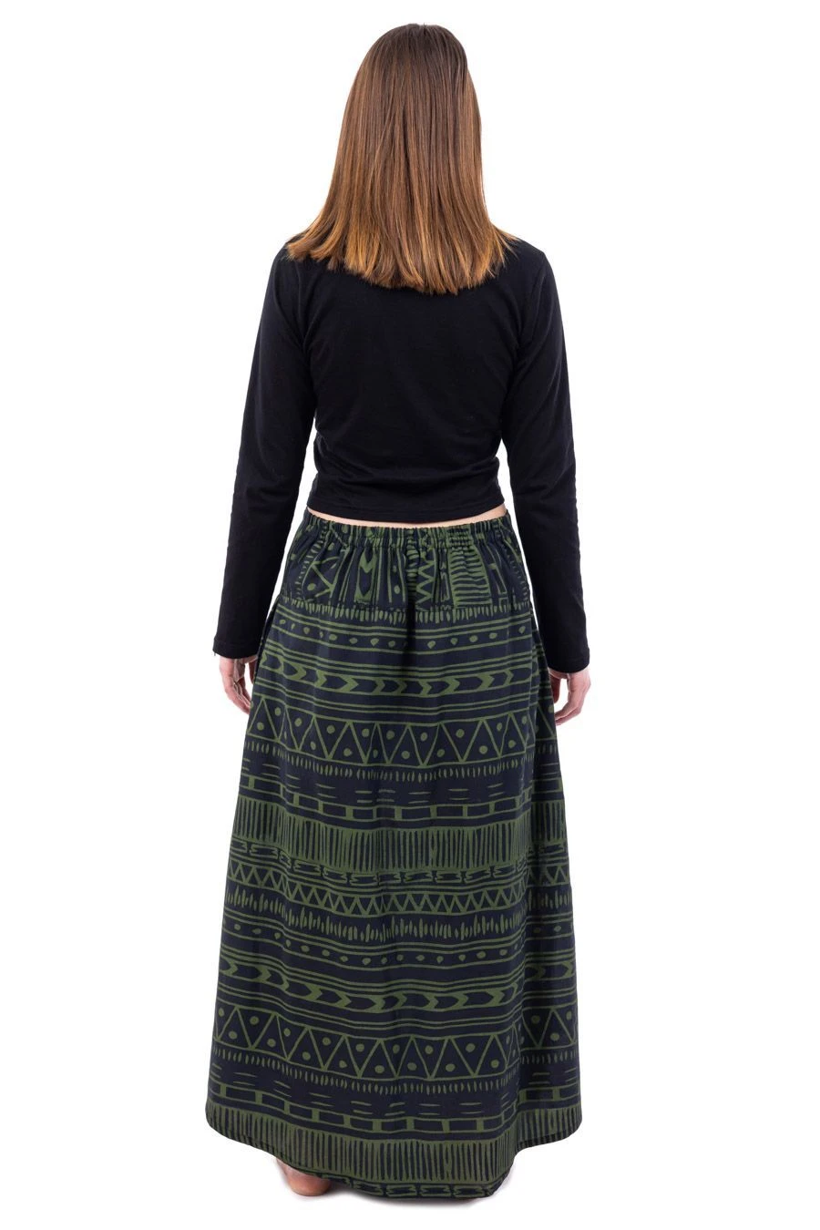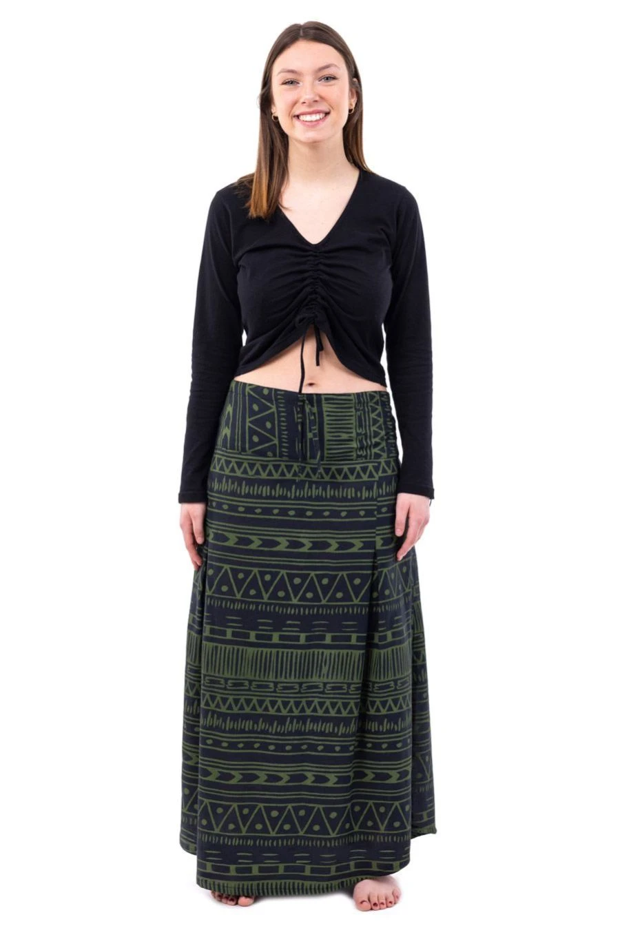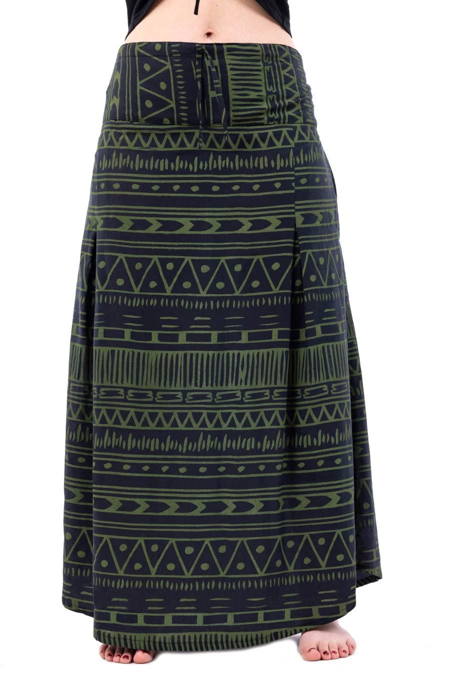 Jupe longue imprimé ethnique Bahouley – K3843 – 100% coton khadar léger du Népal tissé comme du lin.