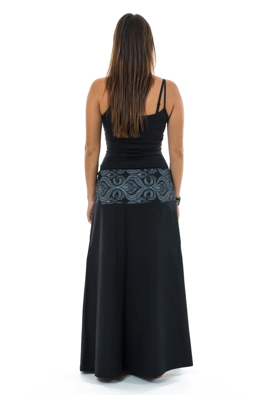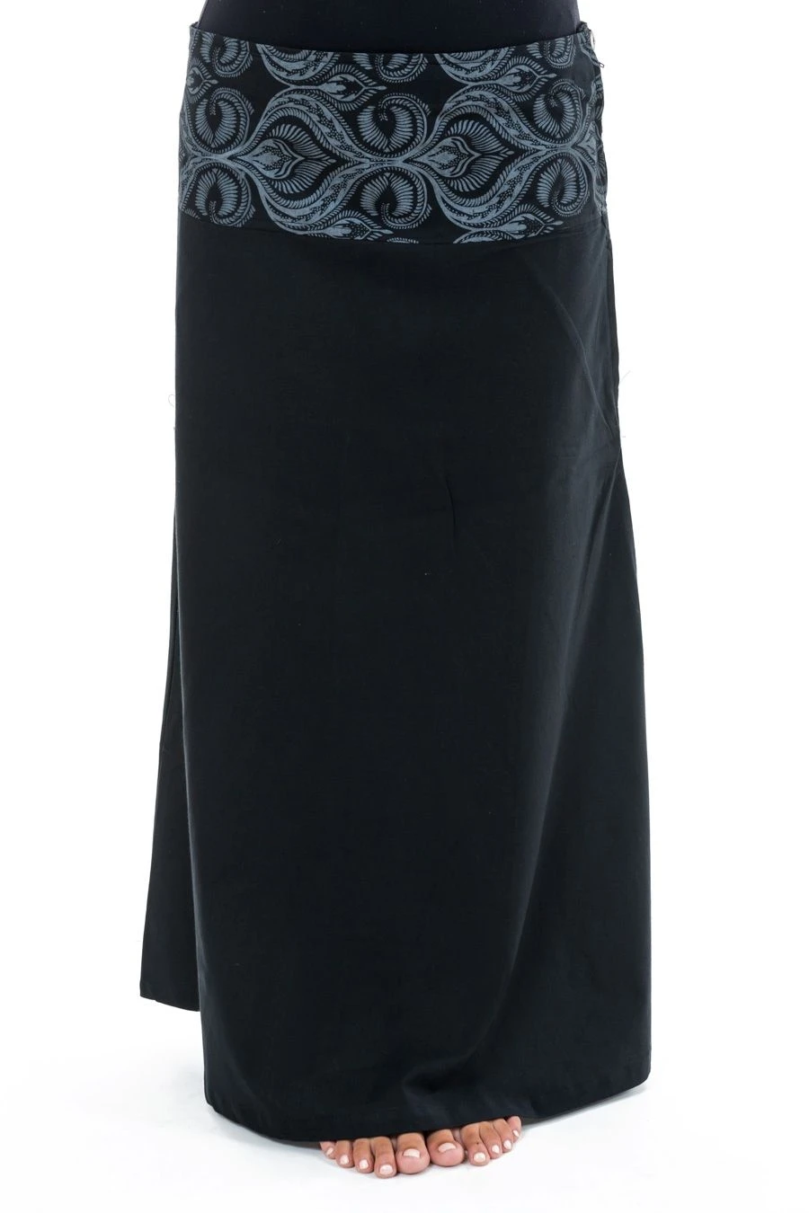 Soyez ethnic chic dans cette jupe longue évasée à bandeau imprimé original.
