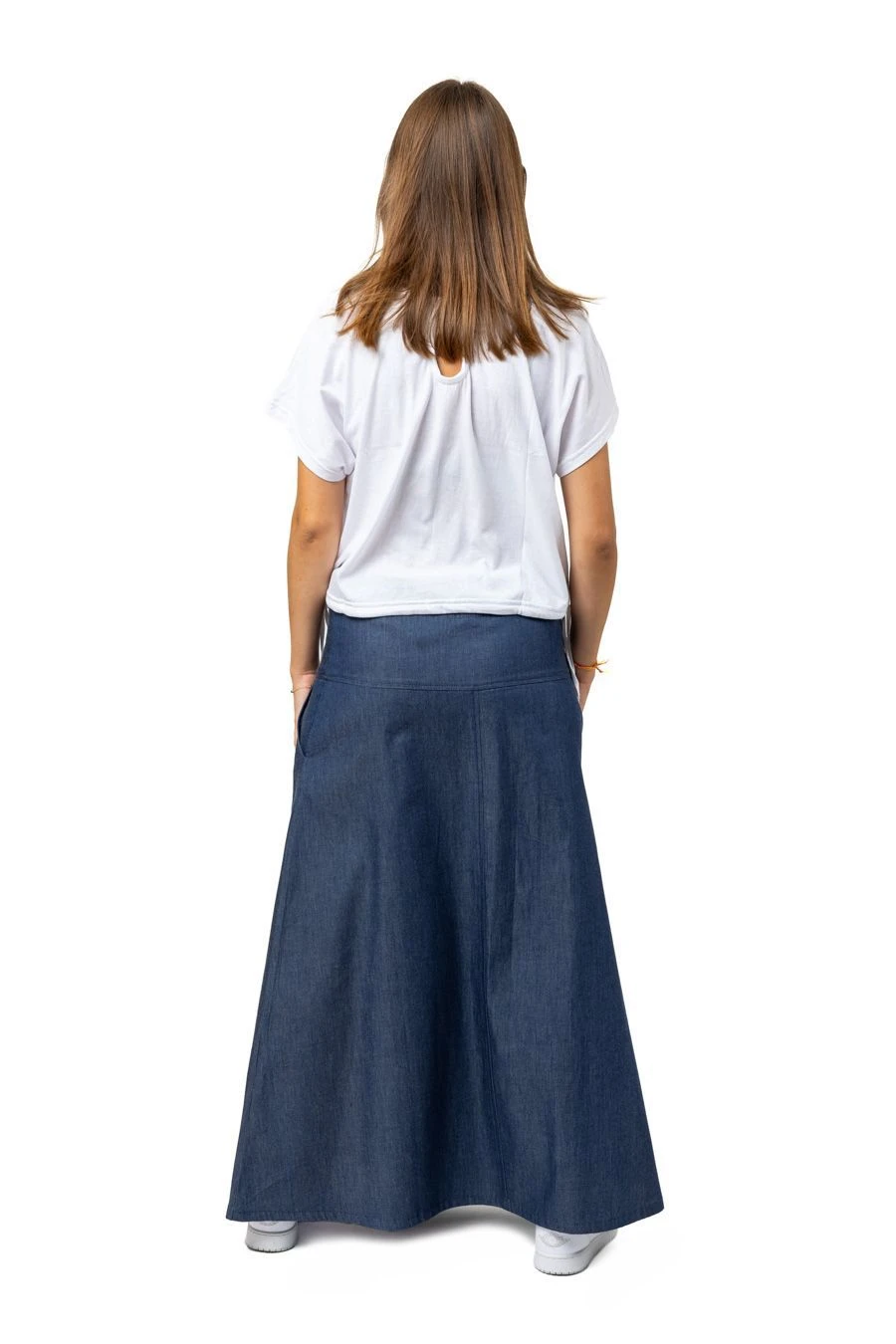 Jupe longue jean denim Lewis – FZ3901 – 100% pur jean denim coton fin du Népal.