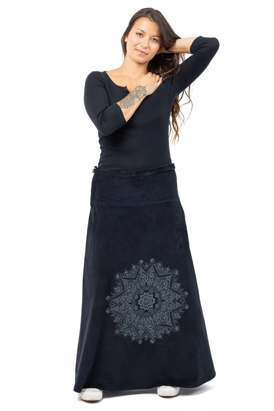 Jupe longue velours milleraies mandala – FZ3525 – 100% velours côtelé du Népal.