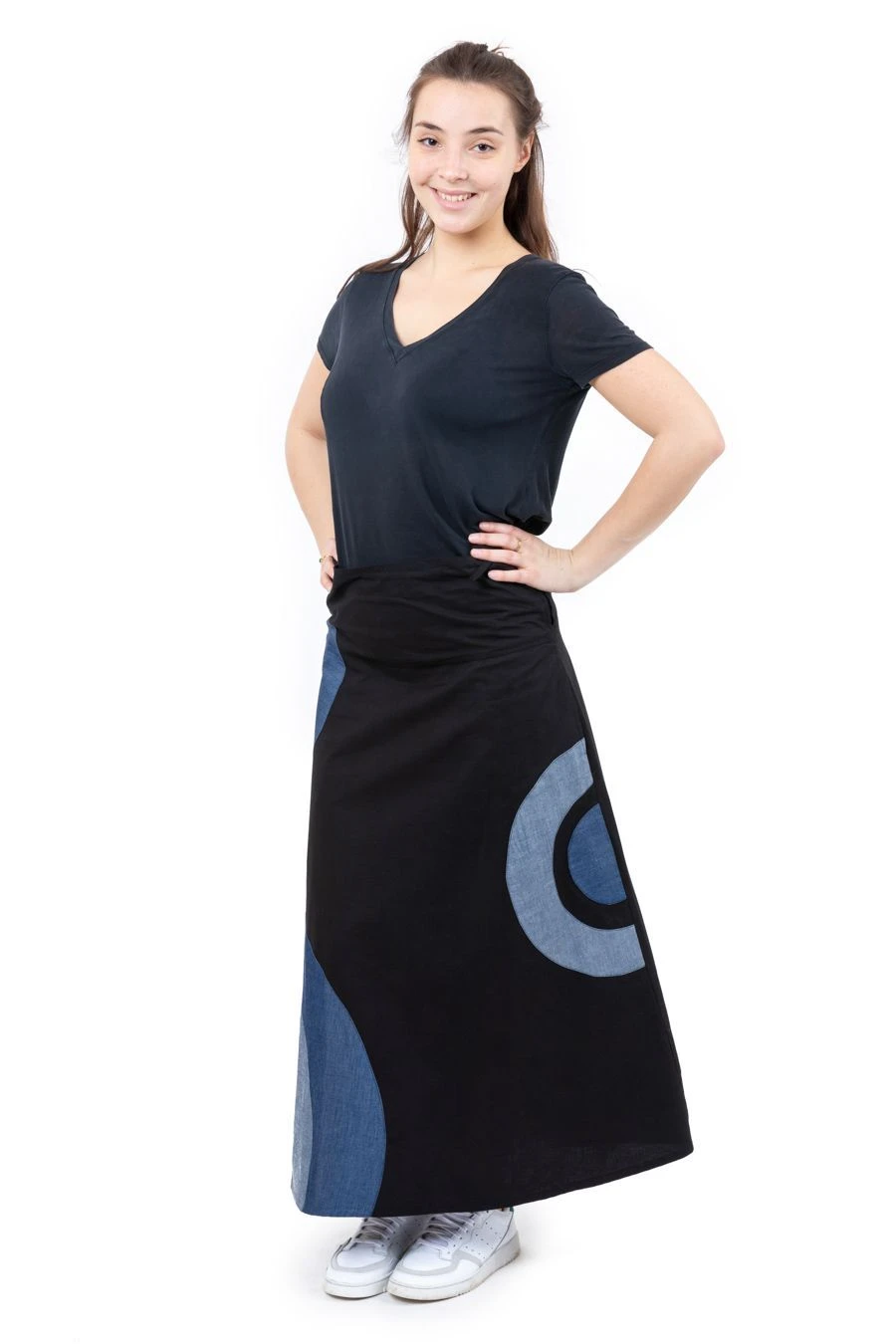 Jupe longue urban girl Sally – FZ3488 – 100% pur coton popeline doux et léger et jean denim du Népal.