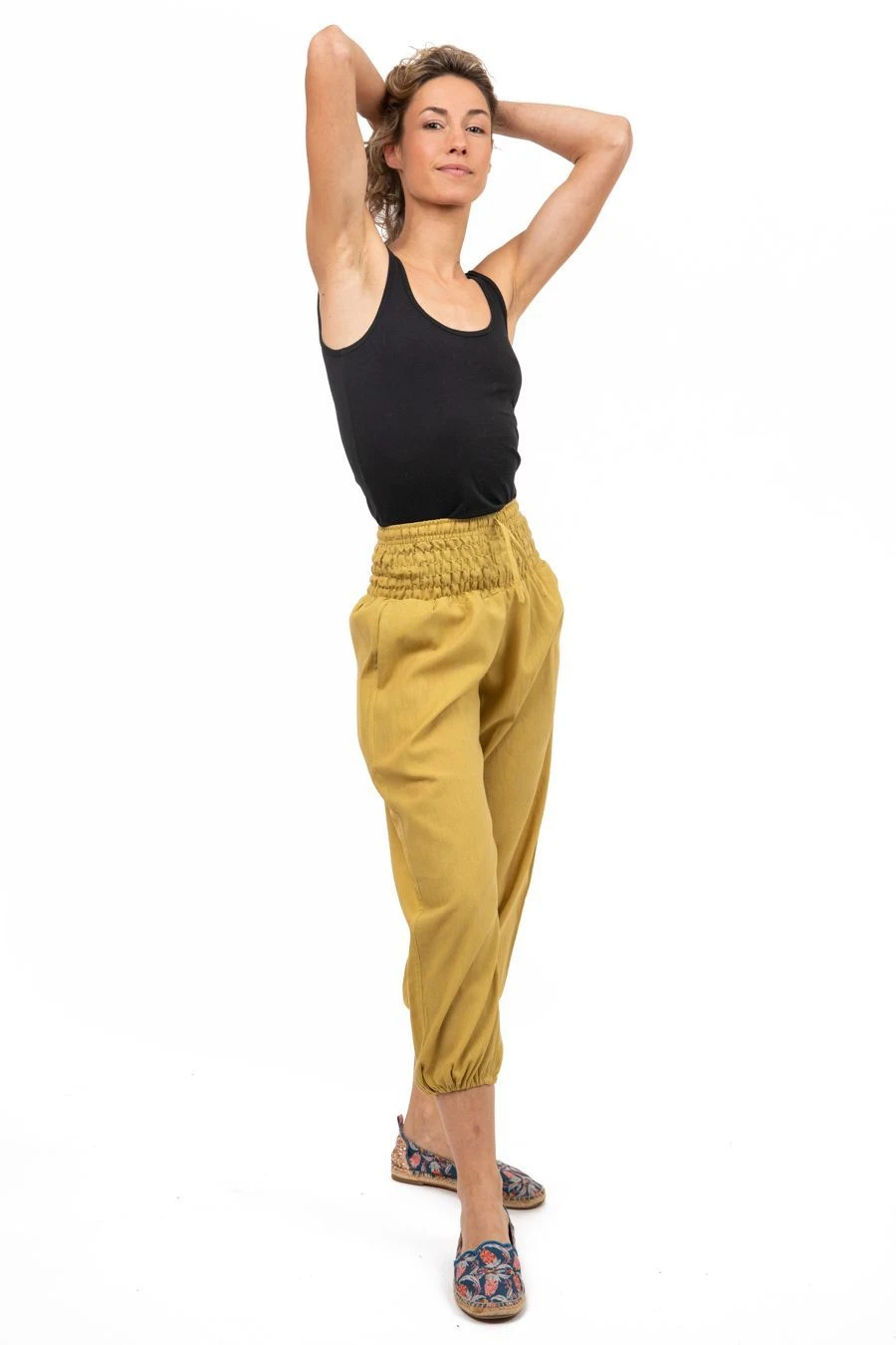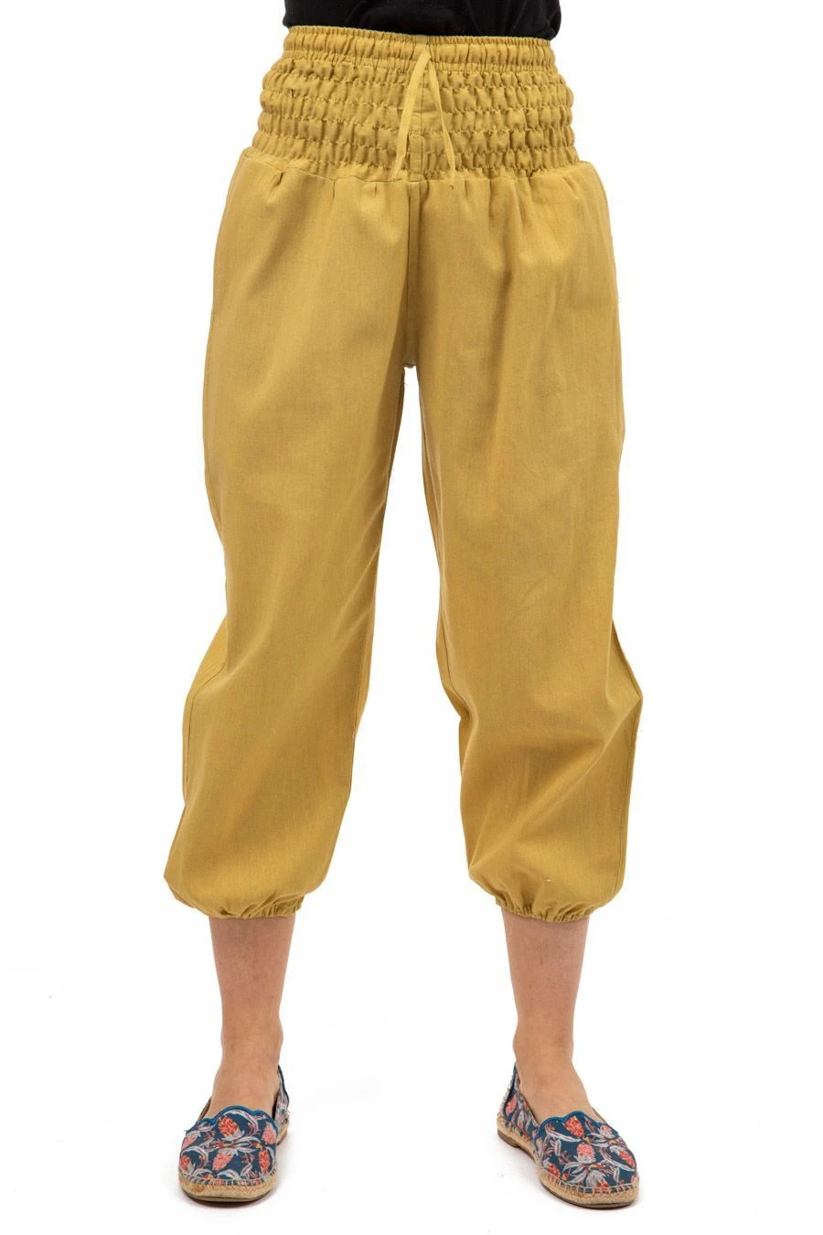 Pantacourt corsaire enfant confort moutarde – K3434 – 100% pur coton khadar léger et doux du Népal.