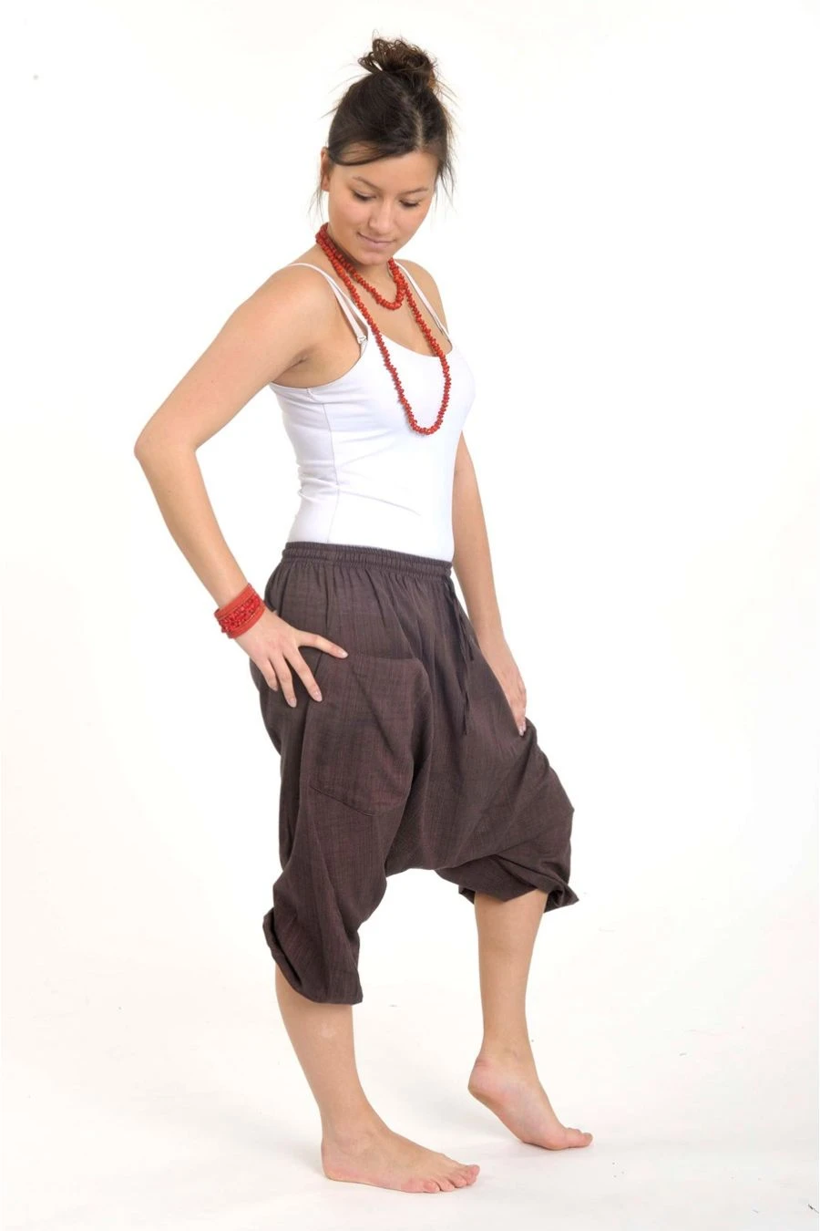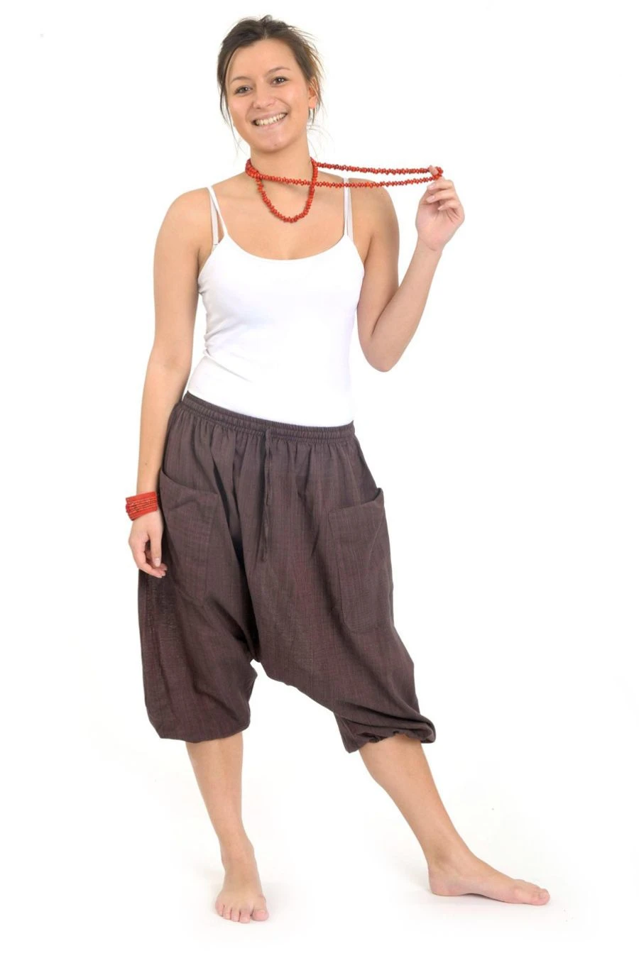 Pantacourt sarouel homme femme Vidya chocolat – K1559 – 100% pur coton léger du Népal.