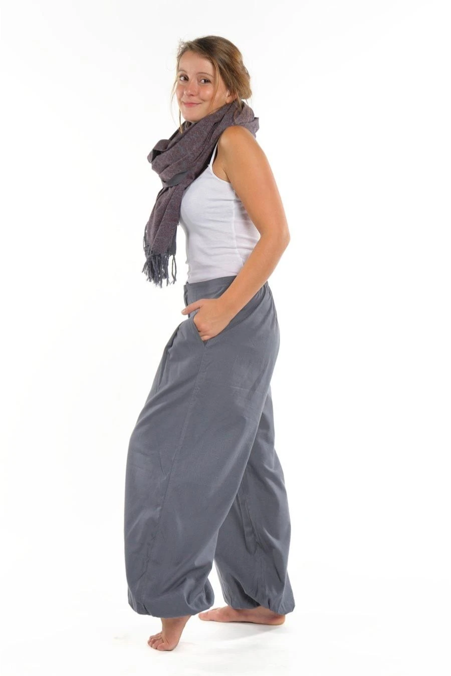 Pantalon bouffant mixte Kerman gris bleu – FZ1659 – 100% pur coton épais du Népal. Idéal pour la mi-saison et l’hiver.