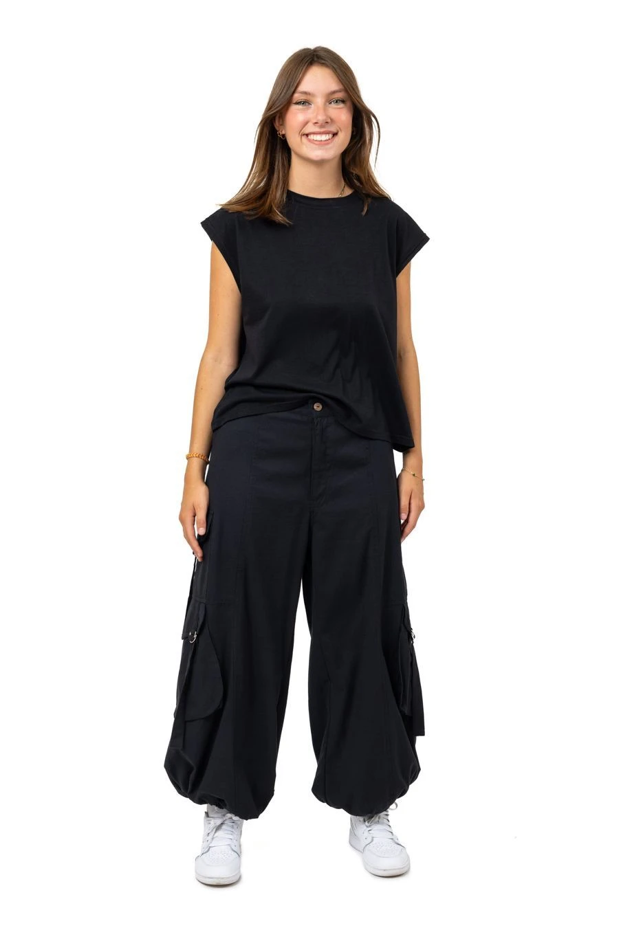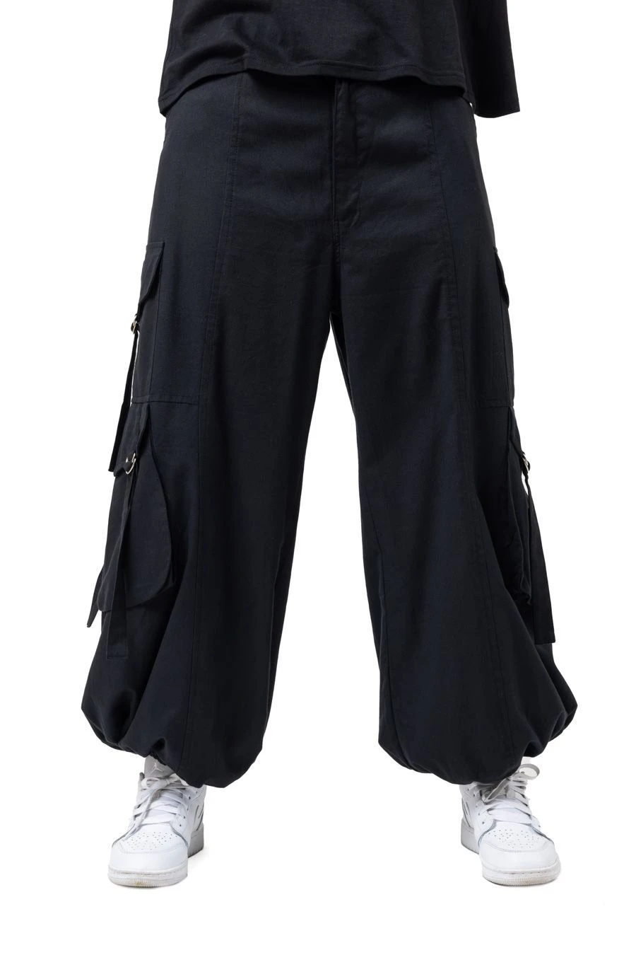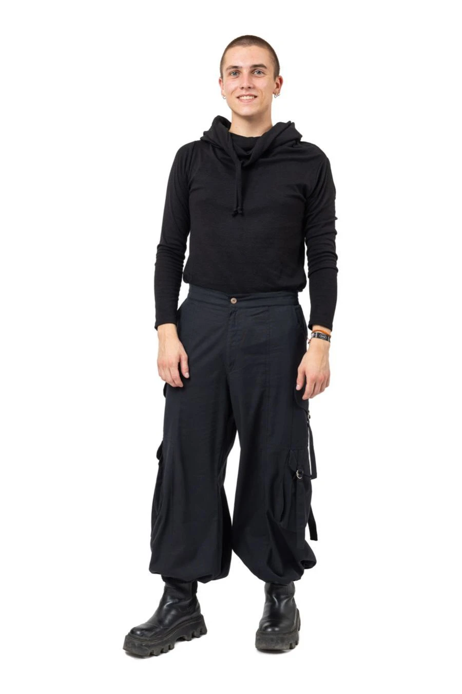 Pantalon cargo noir unisexe Darkyh – FZ3938 – 100% pur coton doux et épais « fine cotton » du Népal. Automne-hiver.