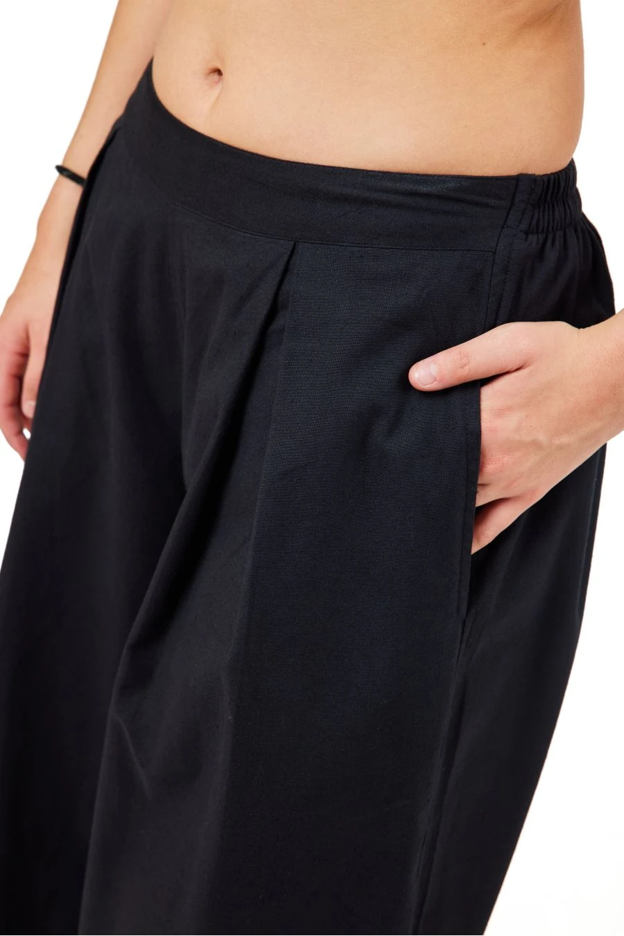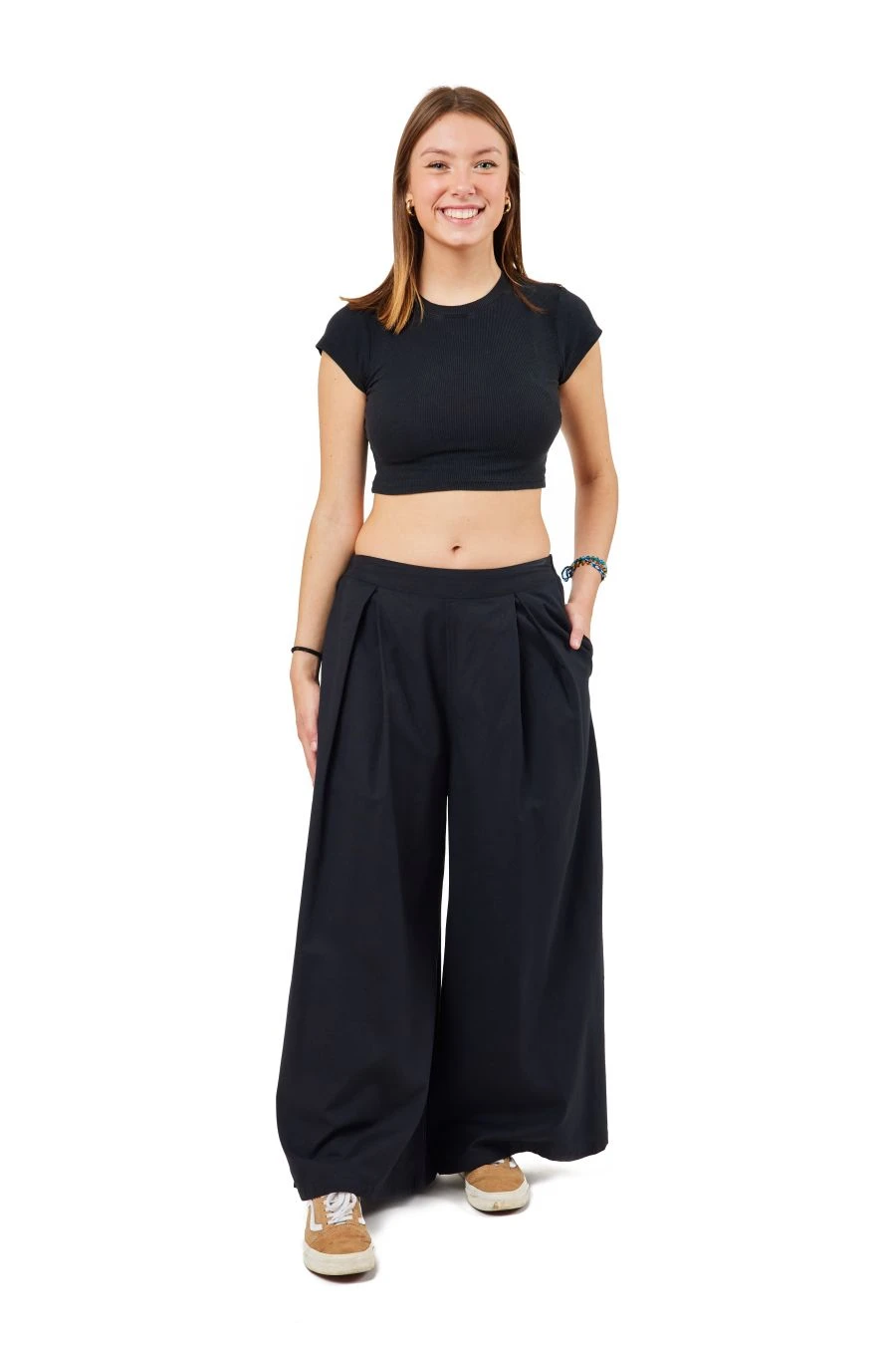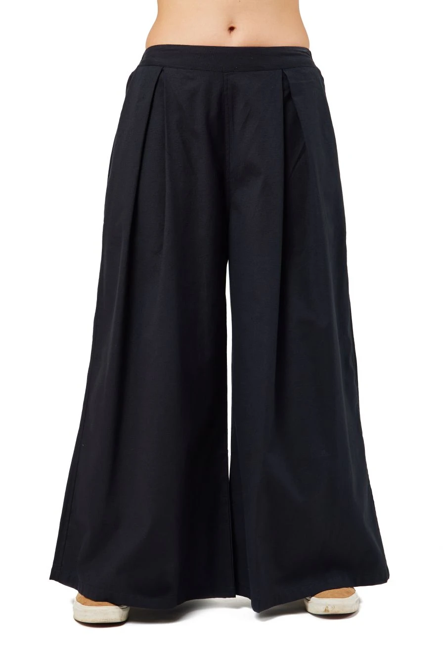 Pantalon large mixte. On aime le détail de plis en haut de jambe pour un joli tombé évasé fluide et ample sur toute la longueur de la jambe.