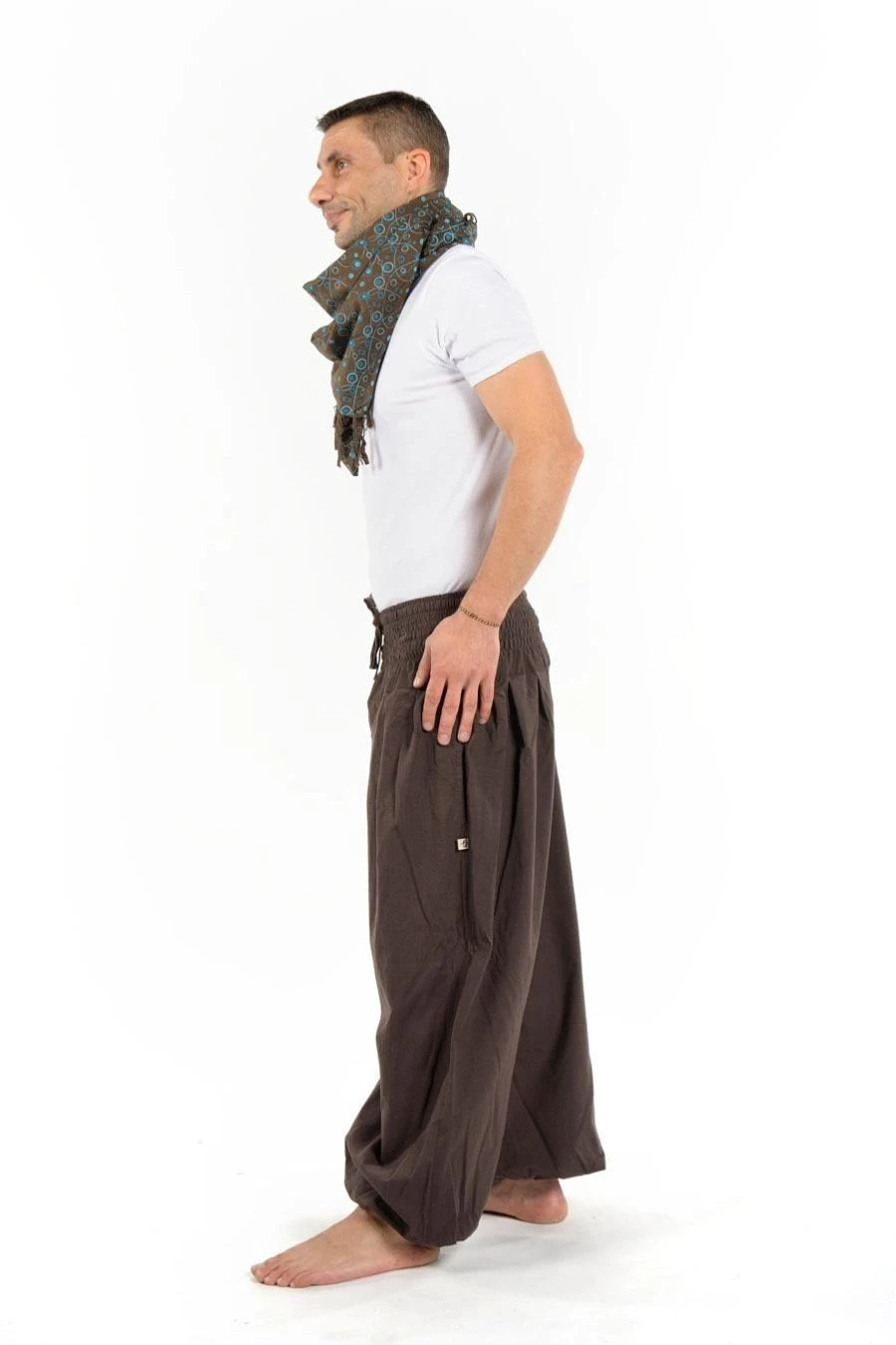 Pantalon sarouel elastique bouffant marron Elia – K1652 – 100% coton Ă©pais du NĂ©pal. Mi-saison automne hiver.