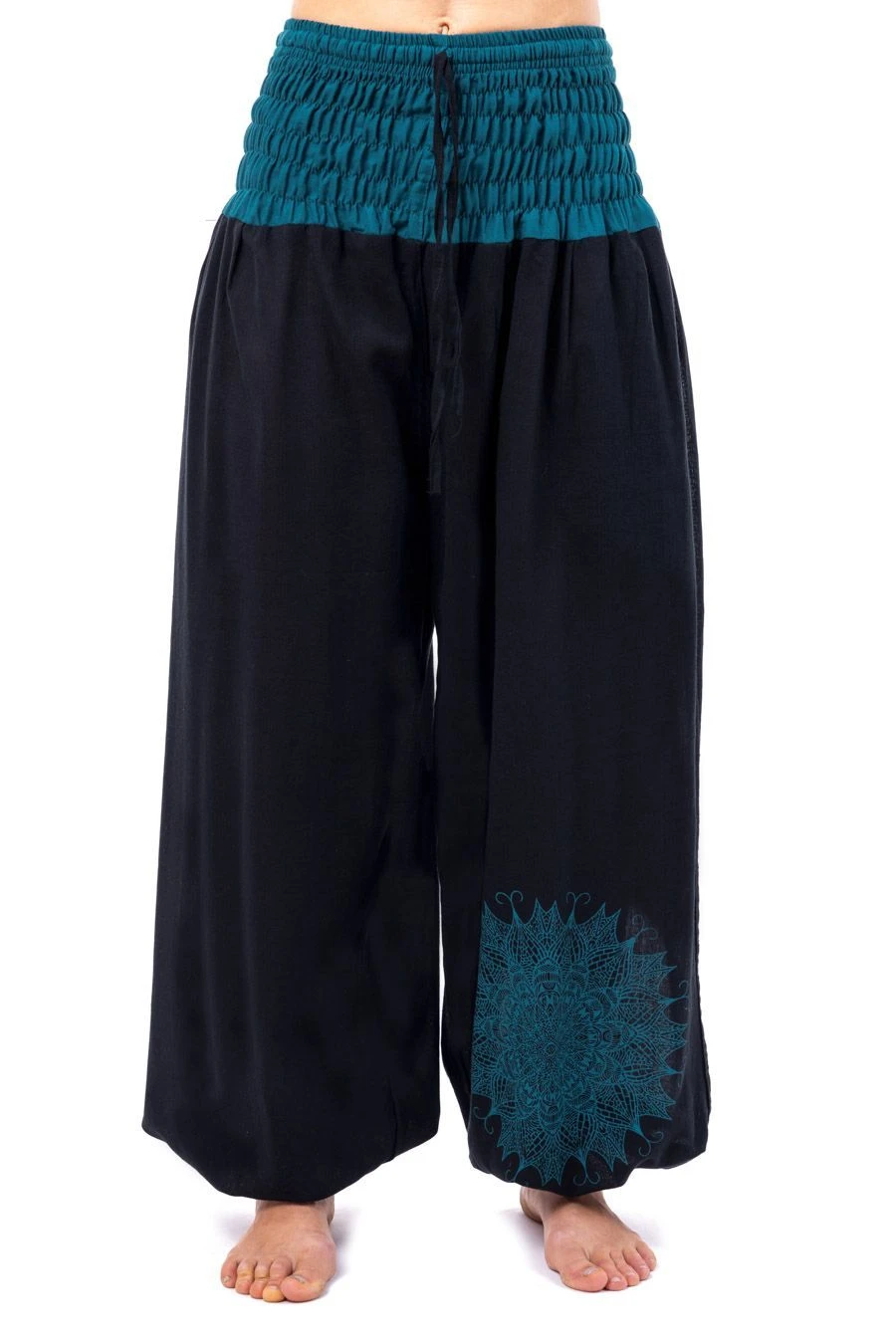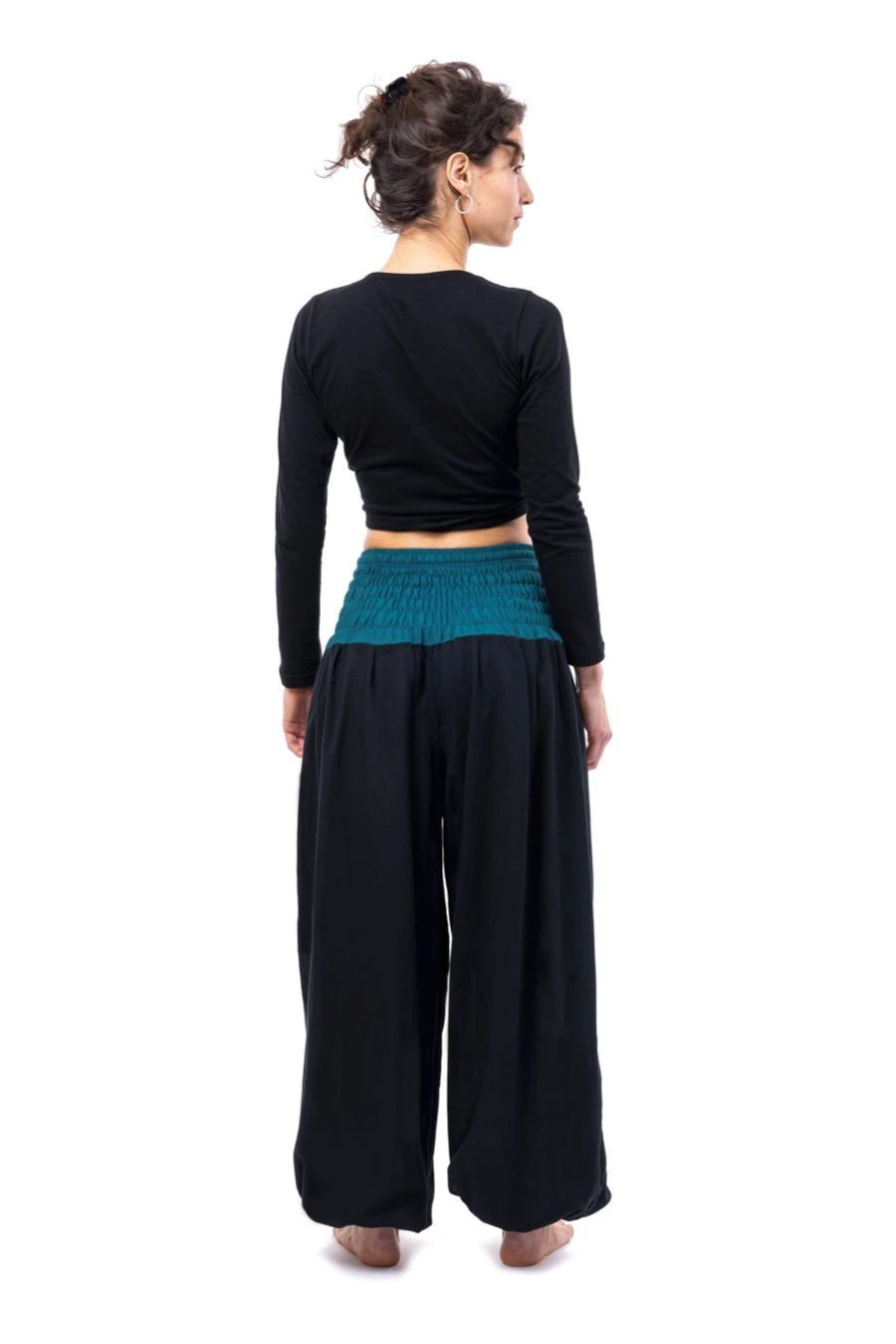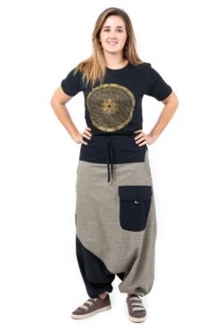 Pantalon sarouel bouffant mixte Havathar – K3849 – 100% pur coton khadar lĂ©ger du NĂ©pal tissĂ© comme du lin.