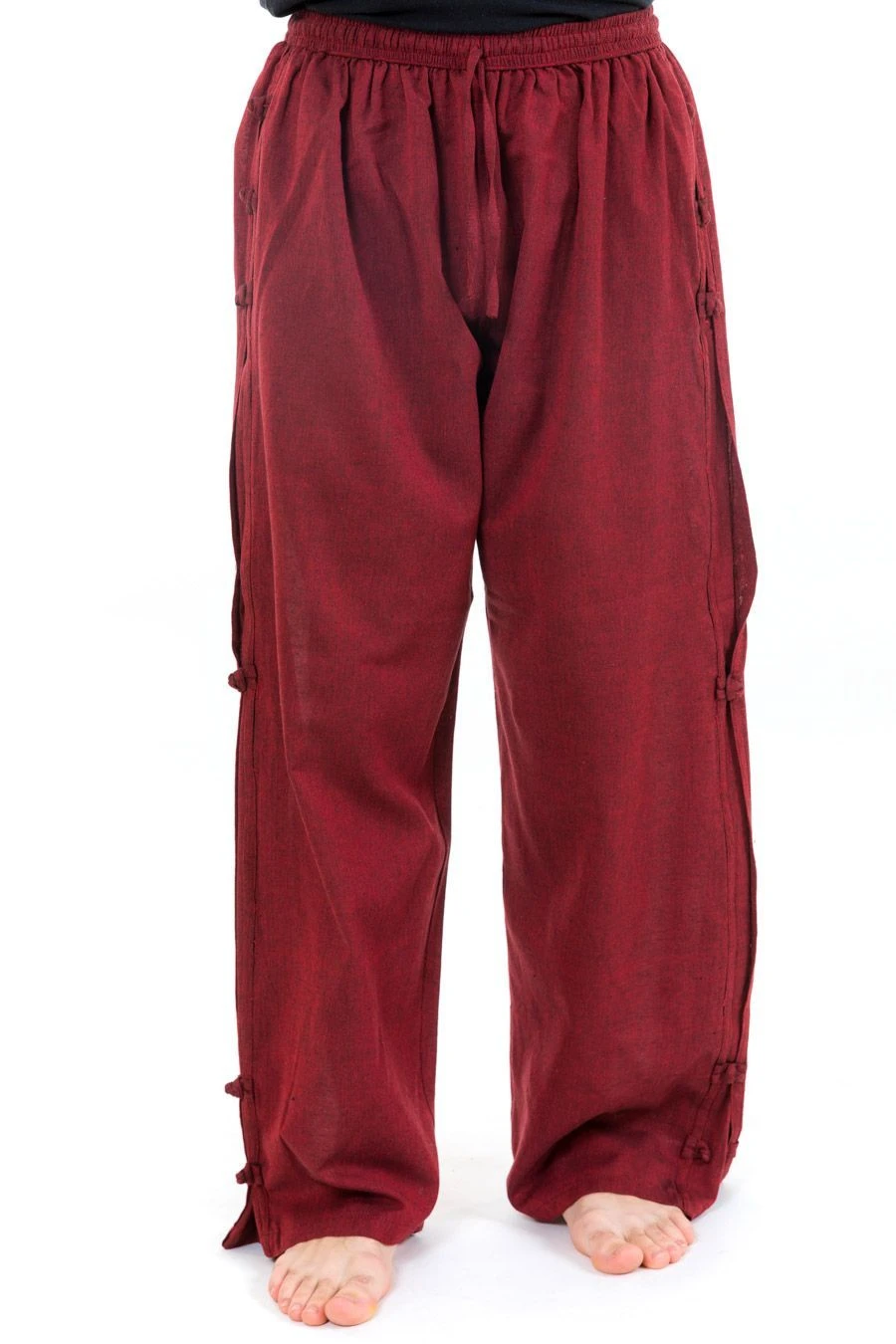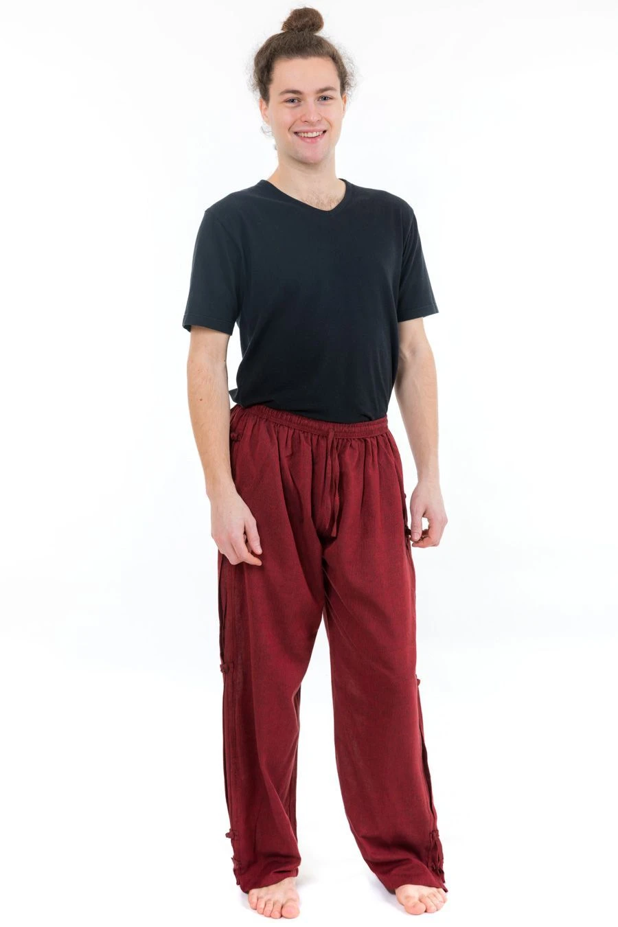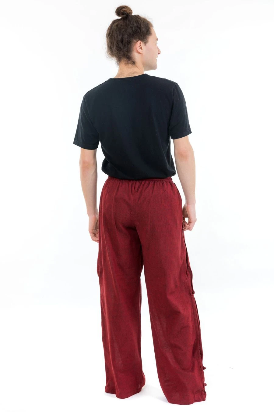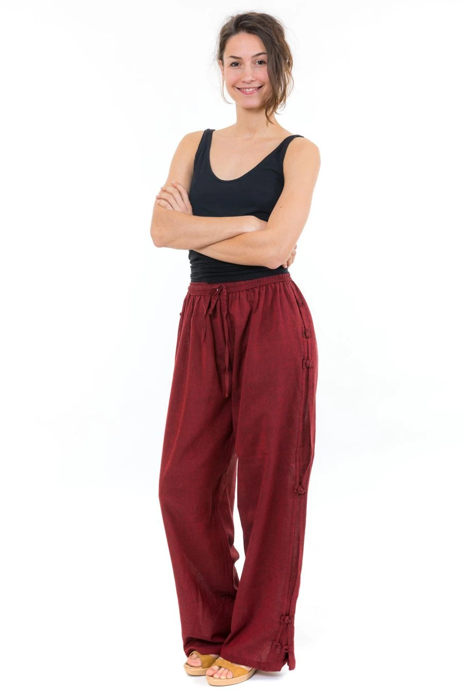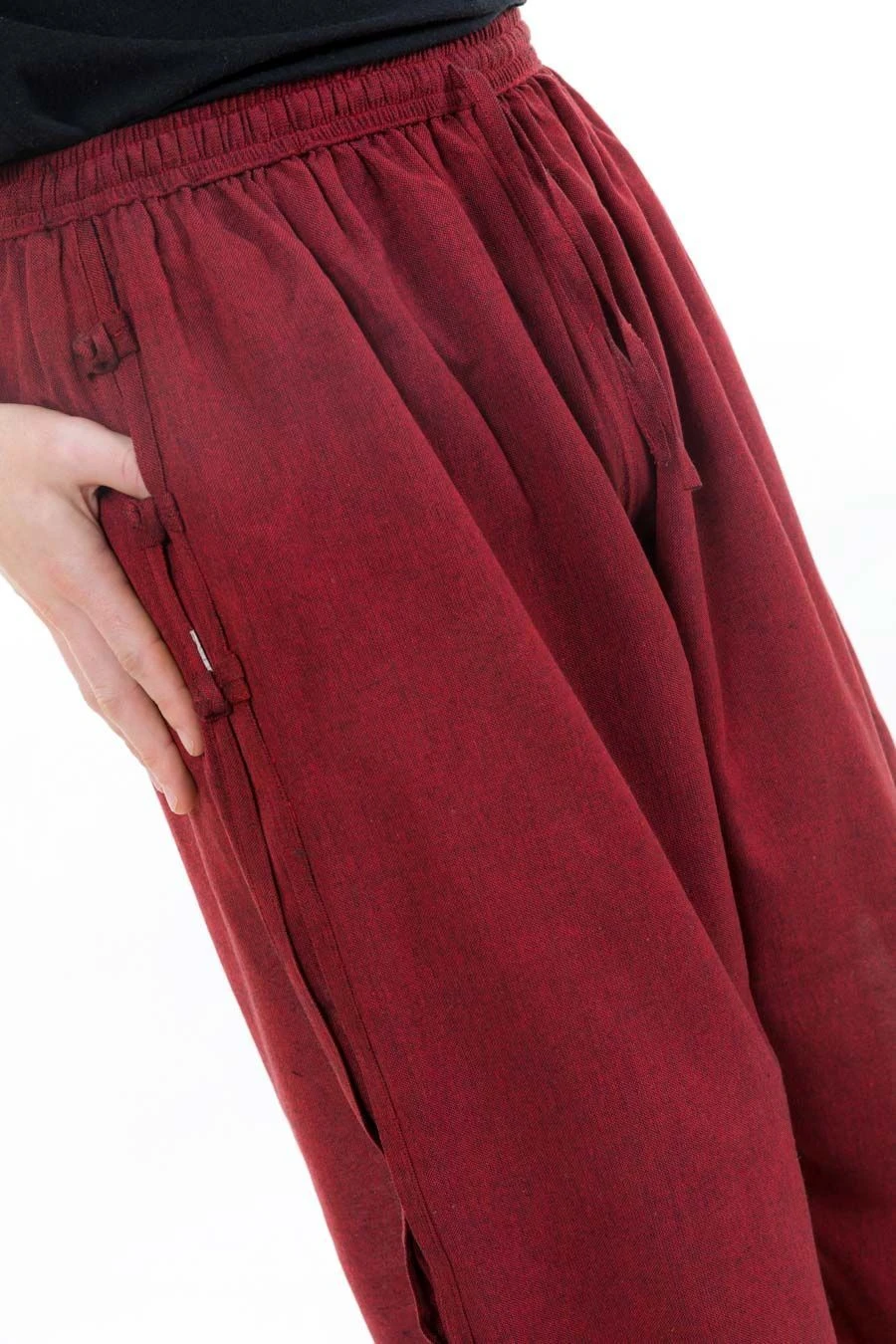 Pantalon japonais large relax chic mixte bordeaux – K2922 – Pur coton khadar léger du Népal tissé comme du lin. Printemps-été.