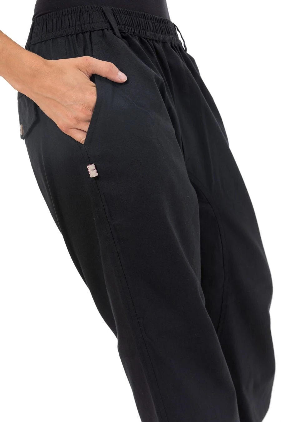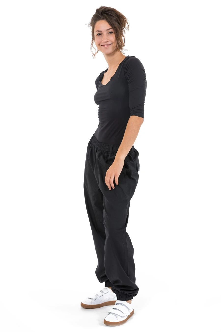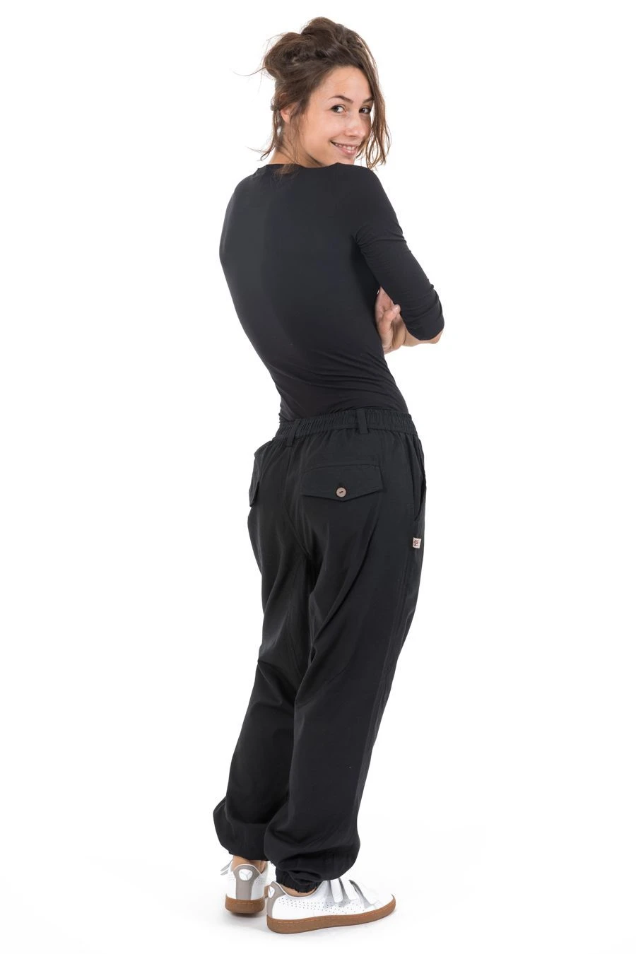Pantalon noir uni Ă©lastique Matiha – FZ2839 – 100% coton du NĂ©pal