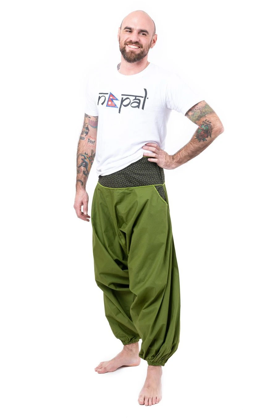 Pantalon sarwel mixte ethnique kaki imprimé rétro Nadehu – FZ2157 – 100% pur coton doux et léger du Népal.