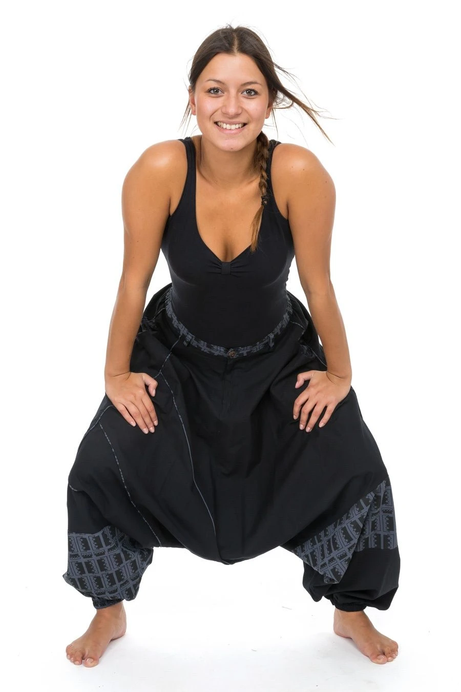 Nos mannequins photos : Carolane – 1,70m – et MickaĂ«l – 1,83m – portent le saroual en taille L (40-42).