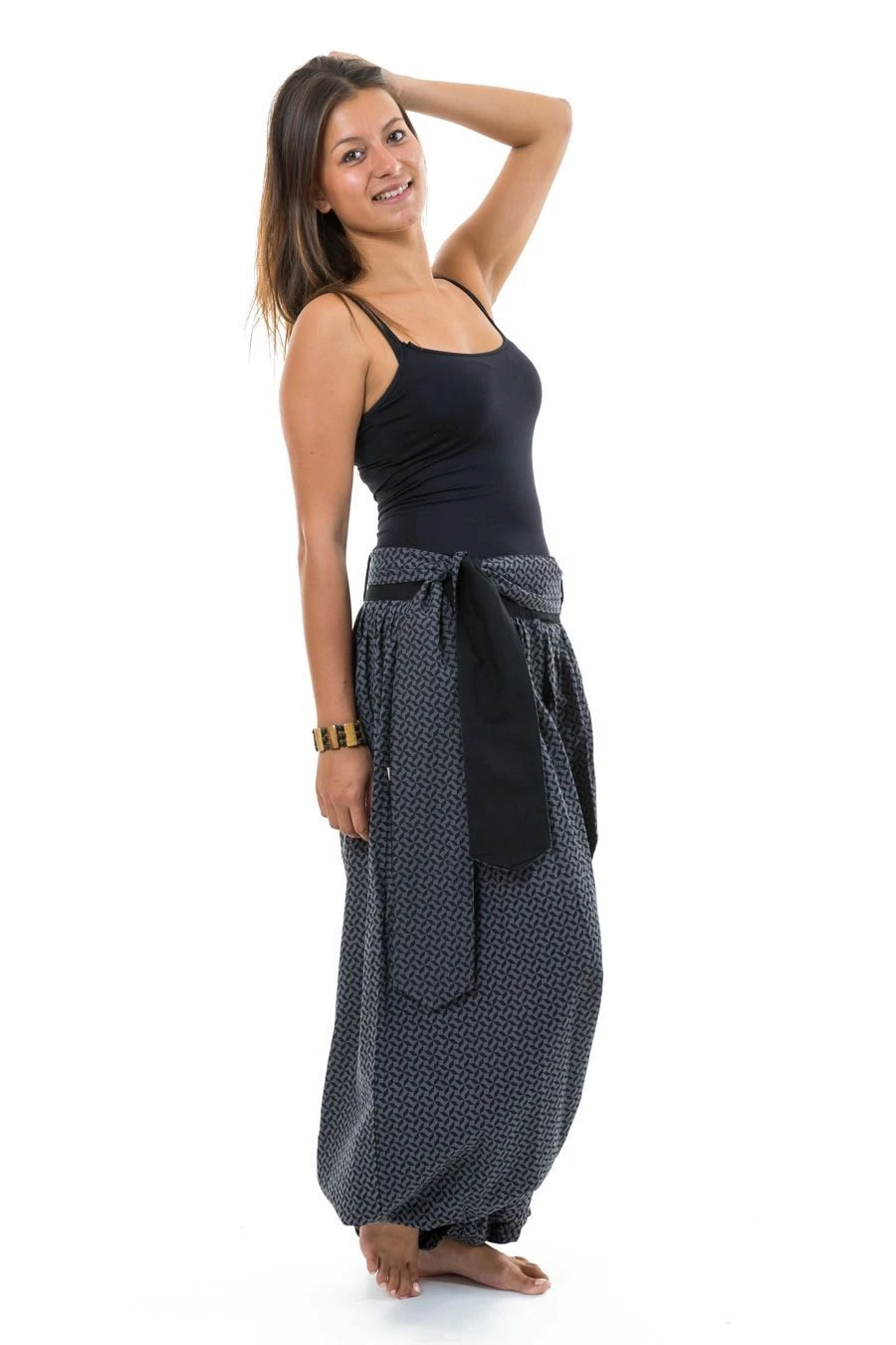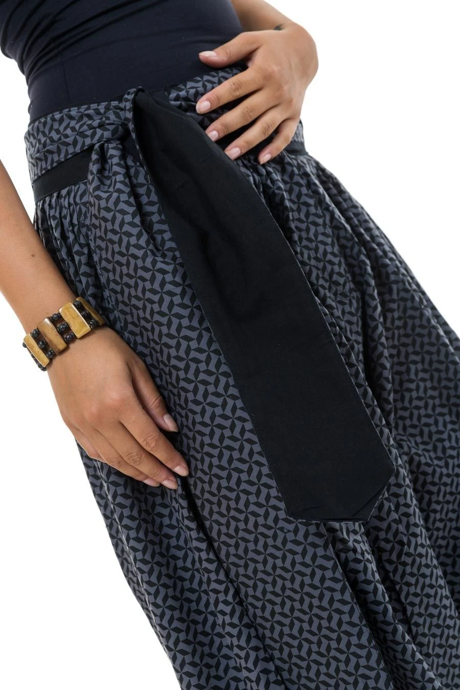 Ce pantalon sarouel bouffant style aladin revisite les codes de l’ethnique avec son imprimé géométrique original ou coloré pour jouer avec les contrastes.