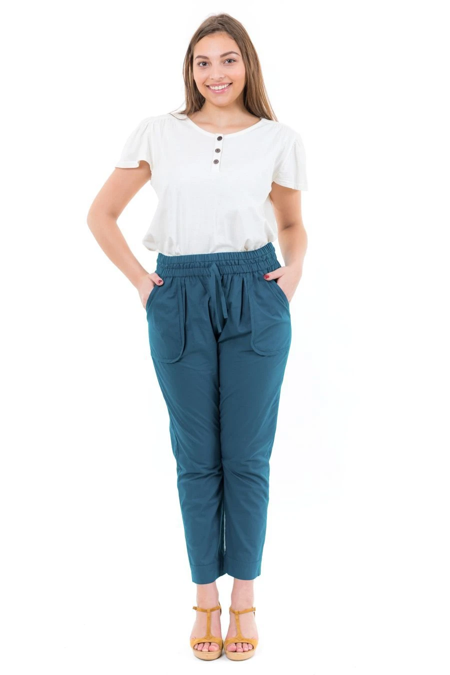 Pantalon carotte bleu pétrole Nebalah – FZ2998A – 100% coton popeline doux et léger du Népal.