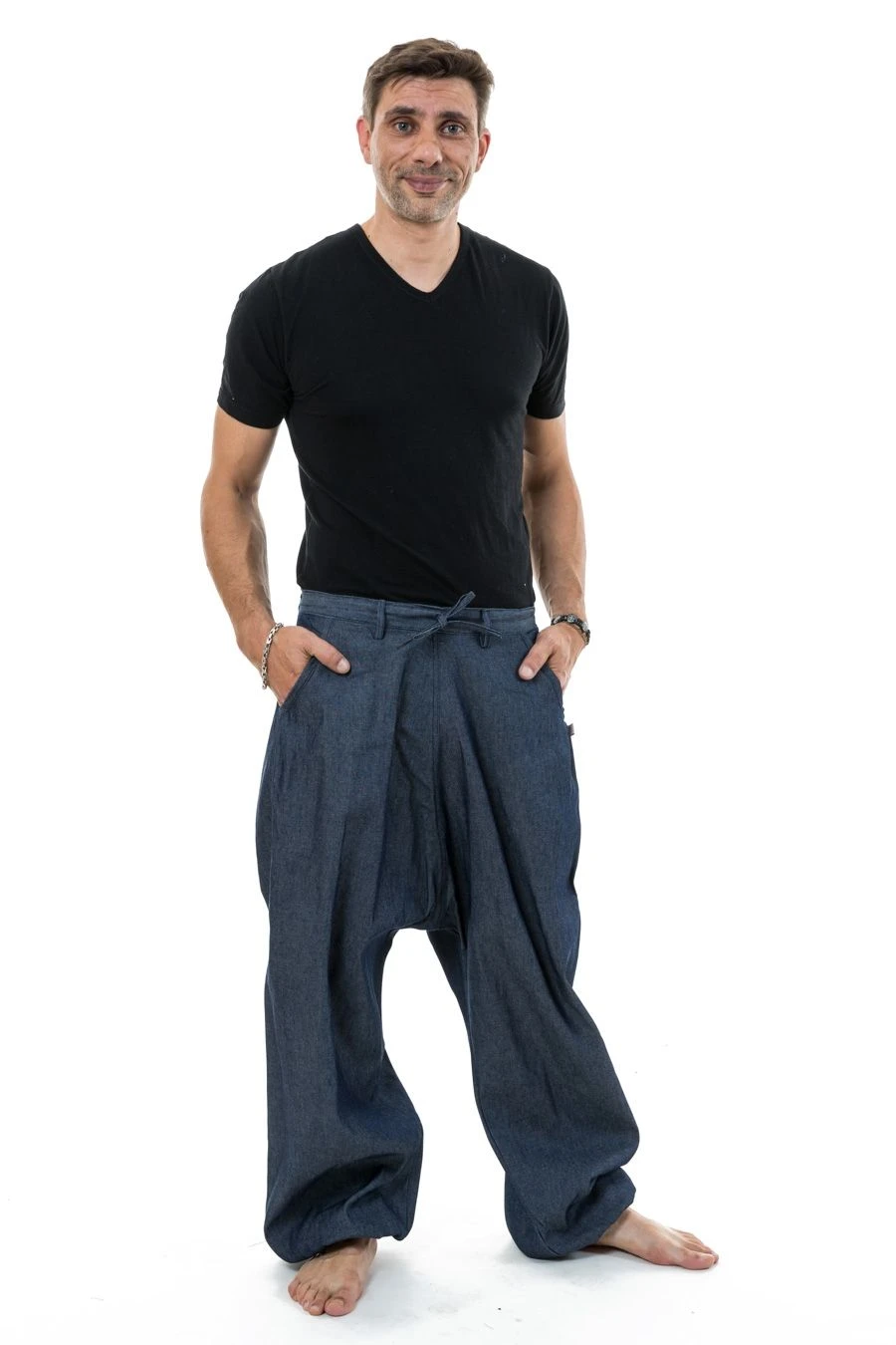 Pantalon sarouel baggy jean homme urban street Sahari – K2532 – 100% jean toile de coton épais du Népal.