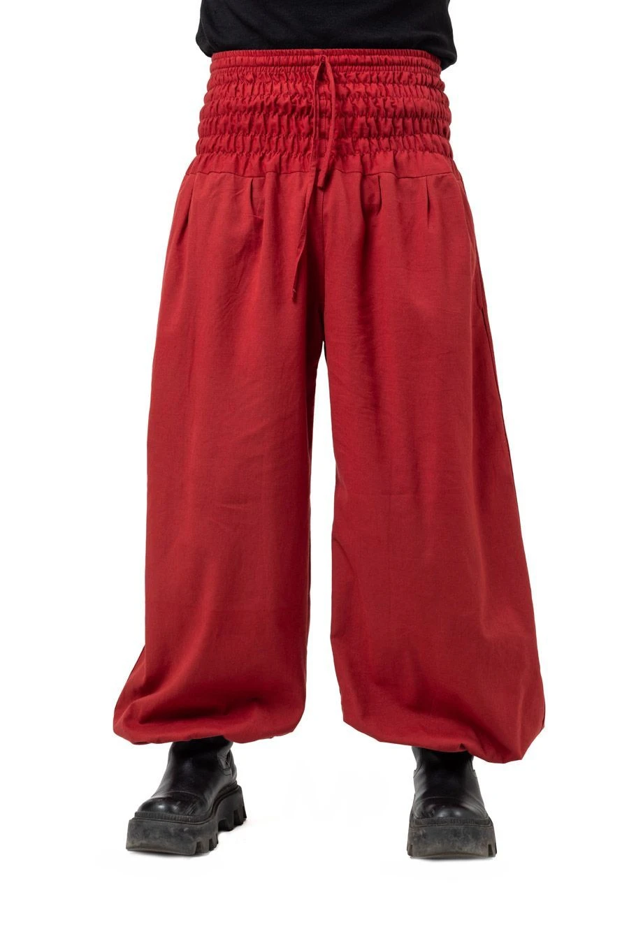 Pantalon bordeaux large Ă©lastique Shanti – K3904 – 100% pur coton Ă©pais du NĂ©pal.