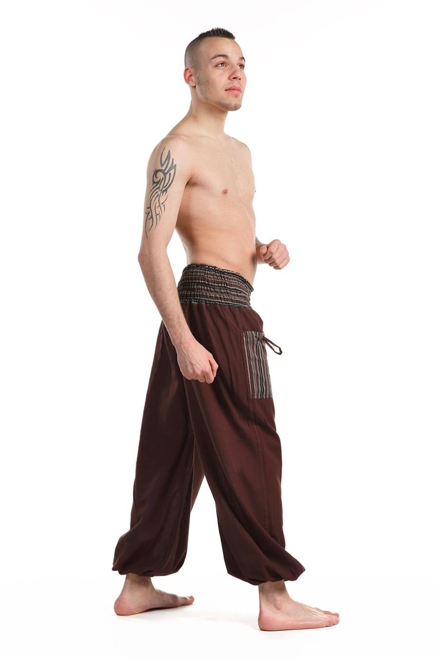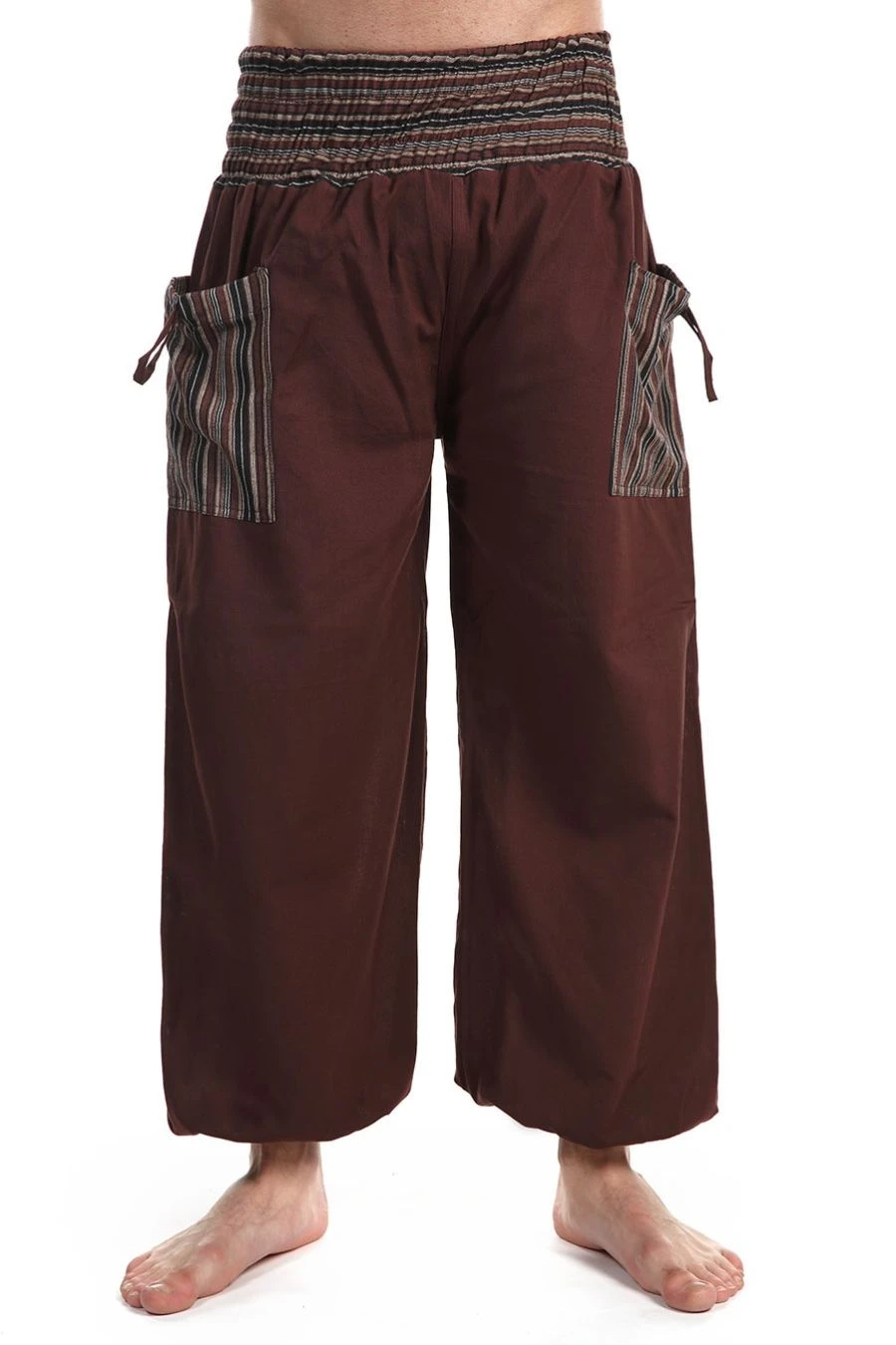 Pantalon elastique grande taille chocolat – K1704 – 100% coton léger du Népal. Mi-saison printemps été.
