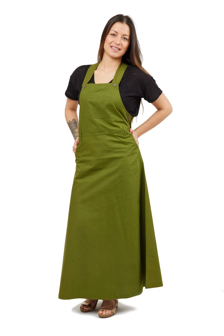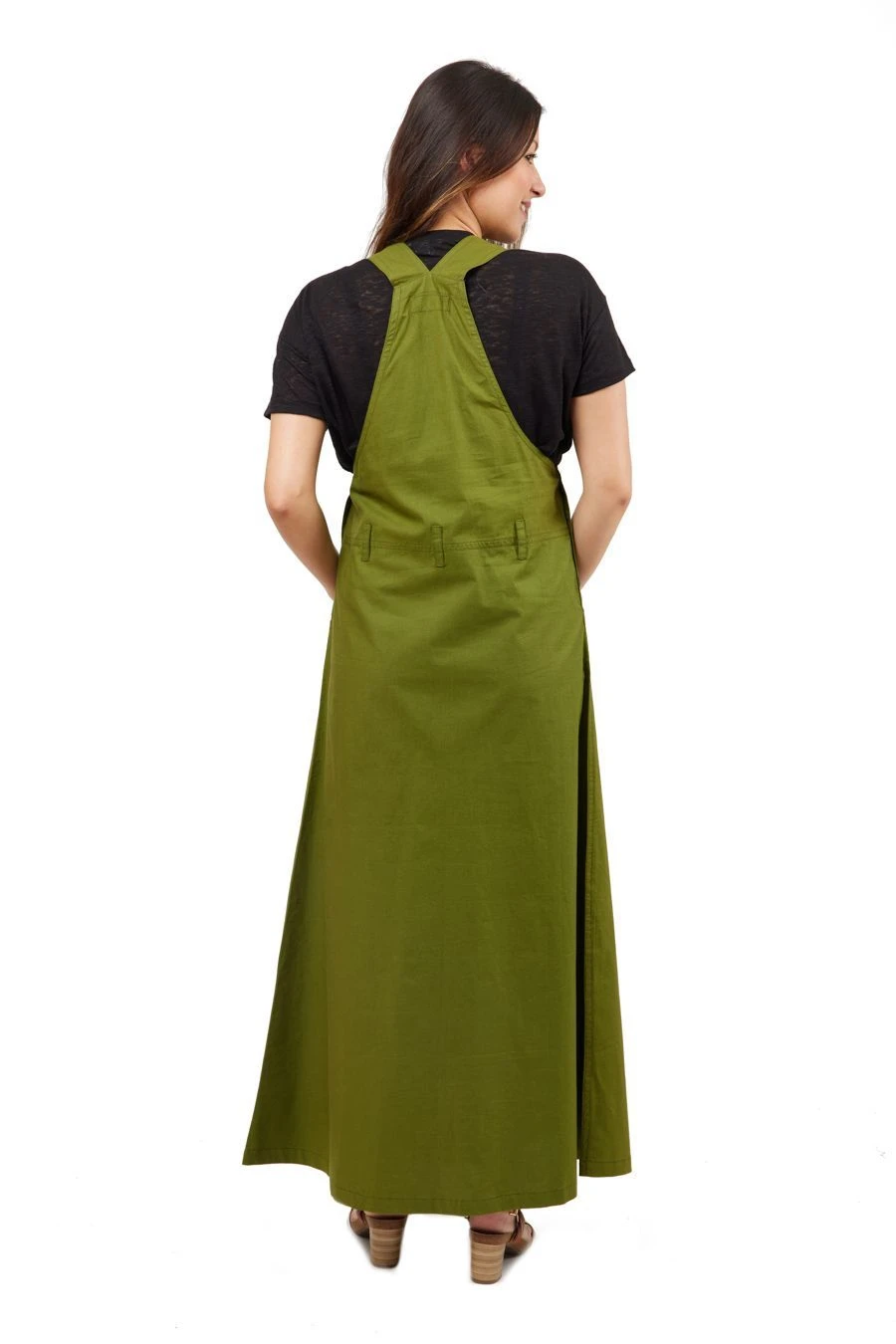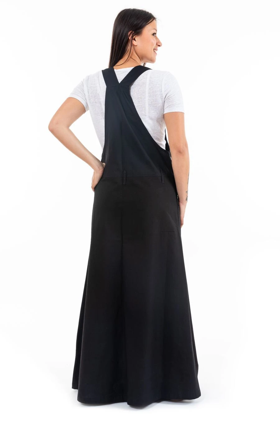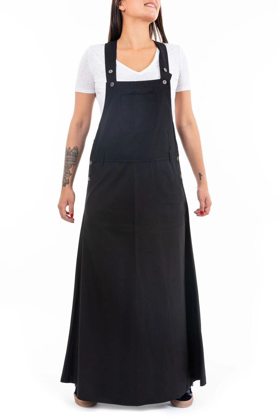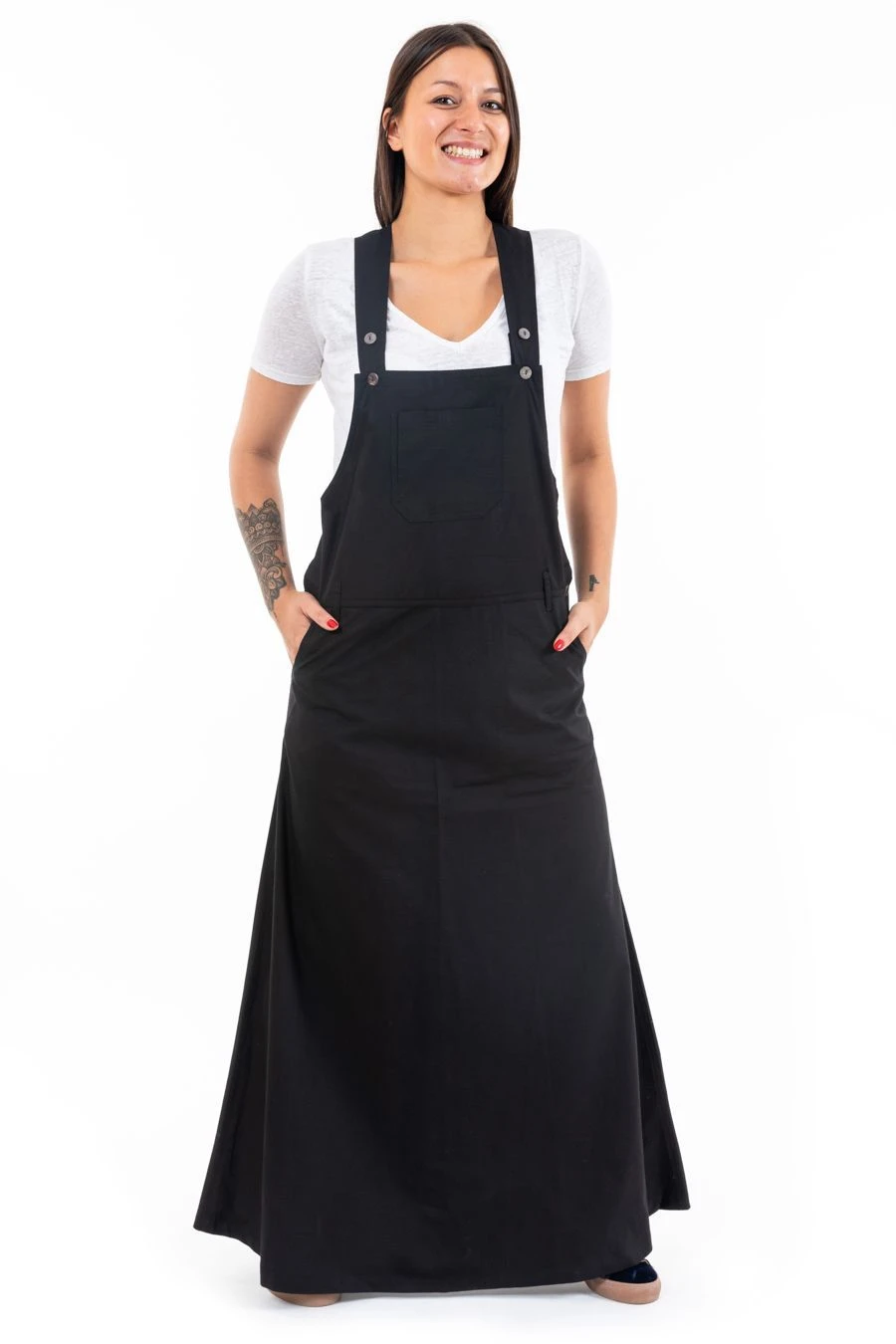 Coupe trapèze confortable et élégante, cette salopette robe longue est un basique original du dressing facile à porter et à accessoiriser dans tous les styles.