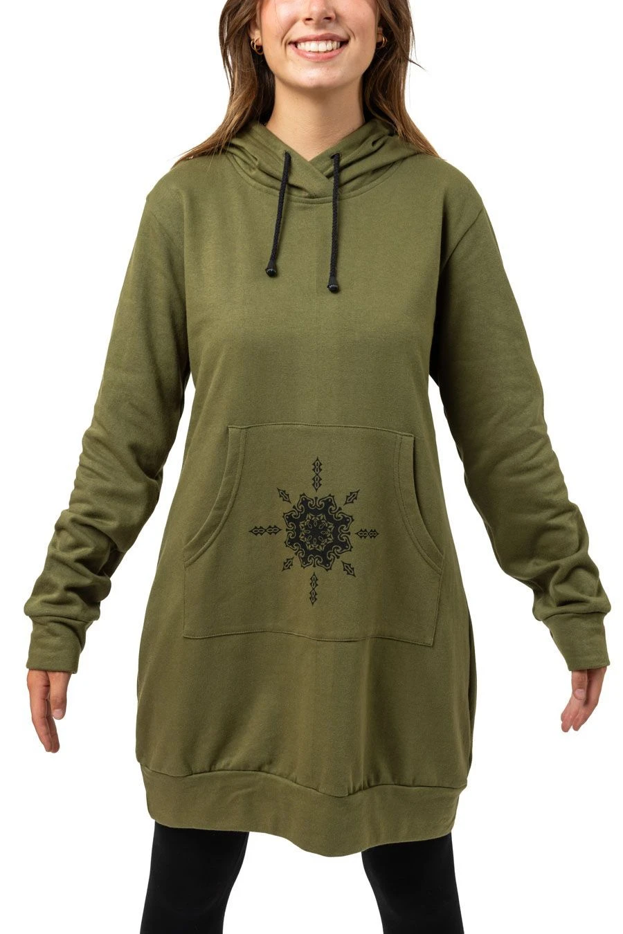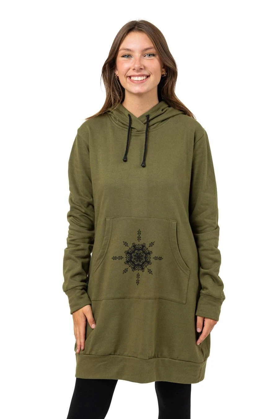 Robe sweat long robe tunique hoodie femme Duhala – FZ3915 – 100% jersey de coton du Népal intérieur molletonné doux. Automne-hiver.