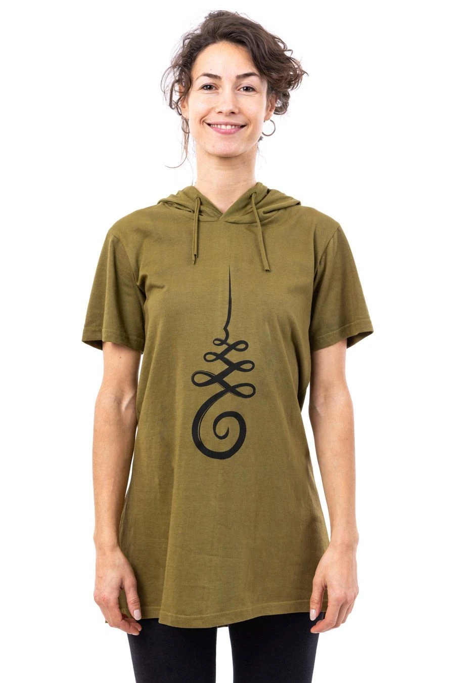 Robe tunique asymétrique à capuche Unalome – FZ3871 – 100% pur jersey de coton léger et doux du Népal.