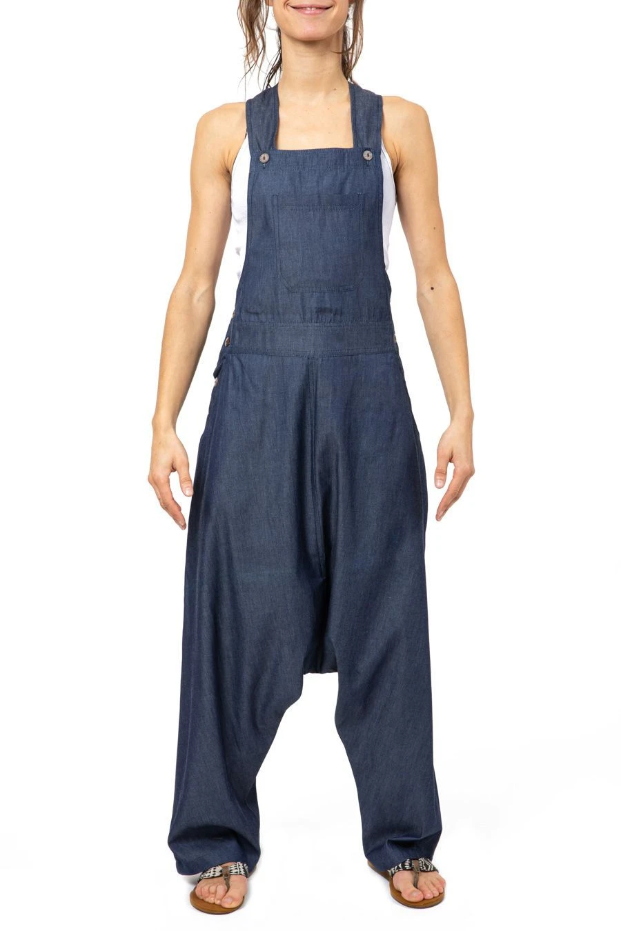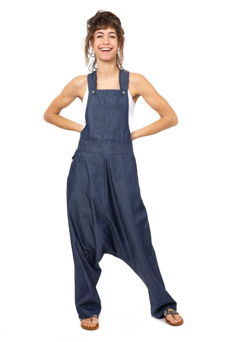 Salopette sarouel denim doux léger Dina – FZ3290 – FZ3836 – 100% pur jean denim en coton léger et doux du Népal. Printemps été.