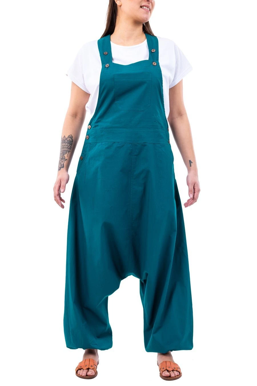 Glissez-vous dans cette salopette à la coupe sarouel ample mixte en coton doux pour vous sentir libre de mener des journées détente ou actives. Facile à enfiler et à accessoiriser, cette salopette à fourche allongée autorise tous les styles : décontracté, sage ou révolutionnaire, claquettes, slip-on, sneakers ou boots montantes, changez de style à volonté.