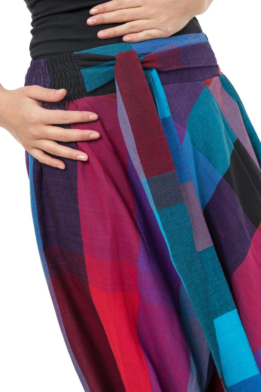 Éclatant de couleurs façon madras revisité s’exprimant à merveille sur ce sarouel ethnique ajustable à la ceinture et en longueur.