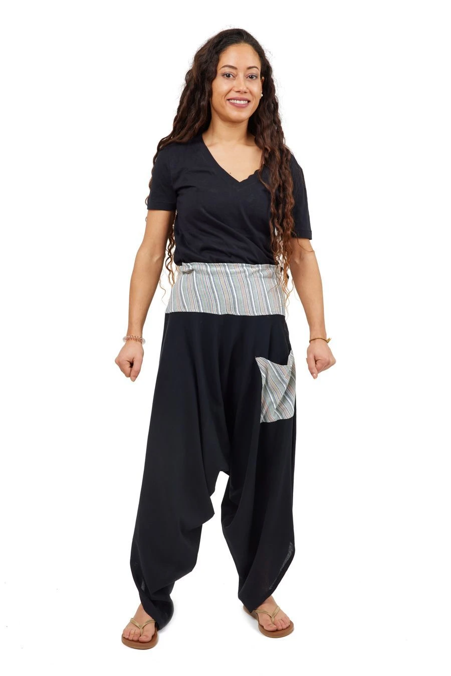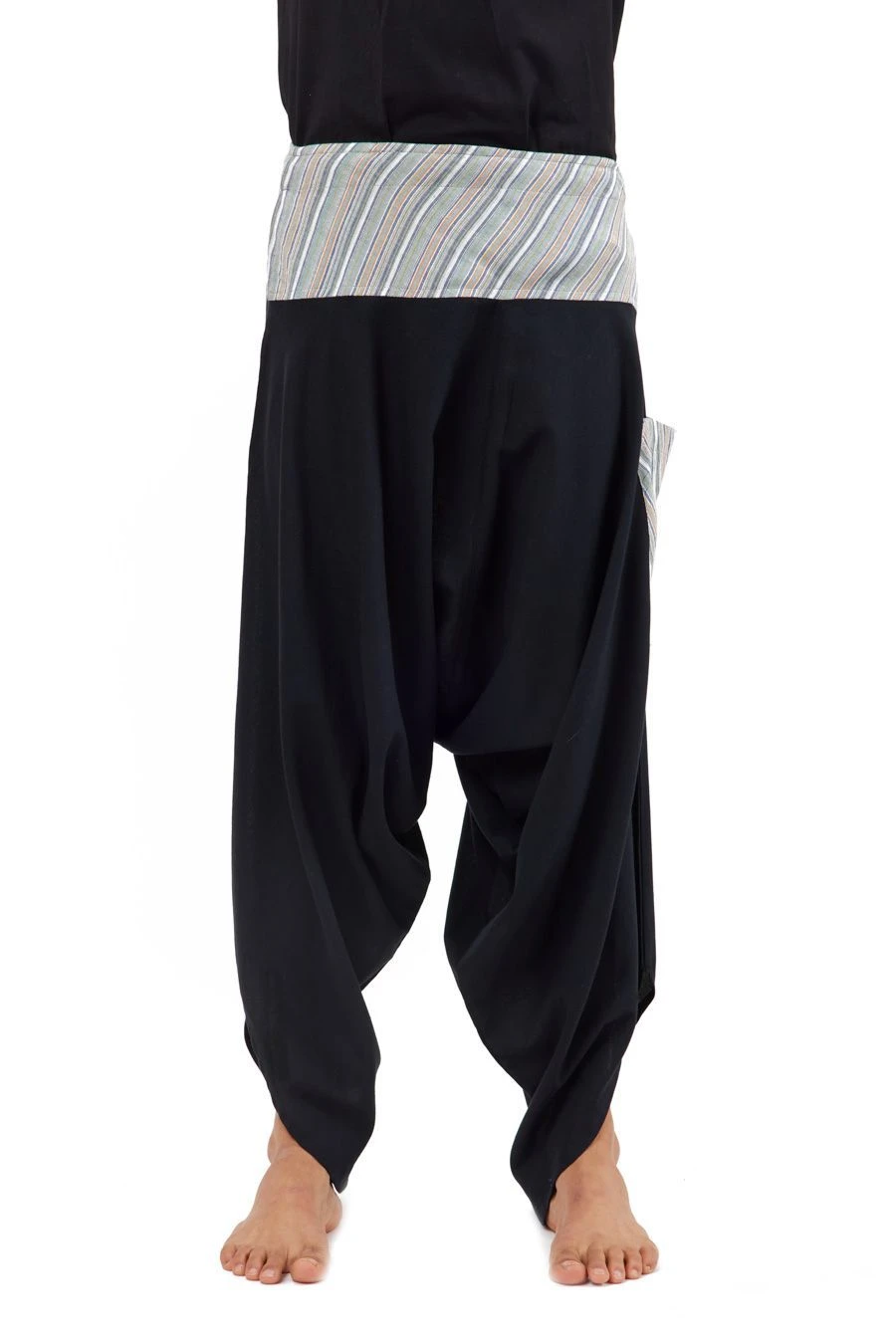 On aime l’originalité de la coupe en biais ouverte en bas de jambe de ce sarouel homme ou sarouel femme. Belle amplitude et fluidité pour un style baba ethnique tout en confort et sobriété, très agréable à porter.