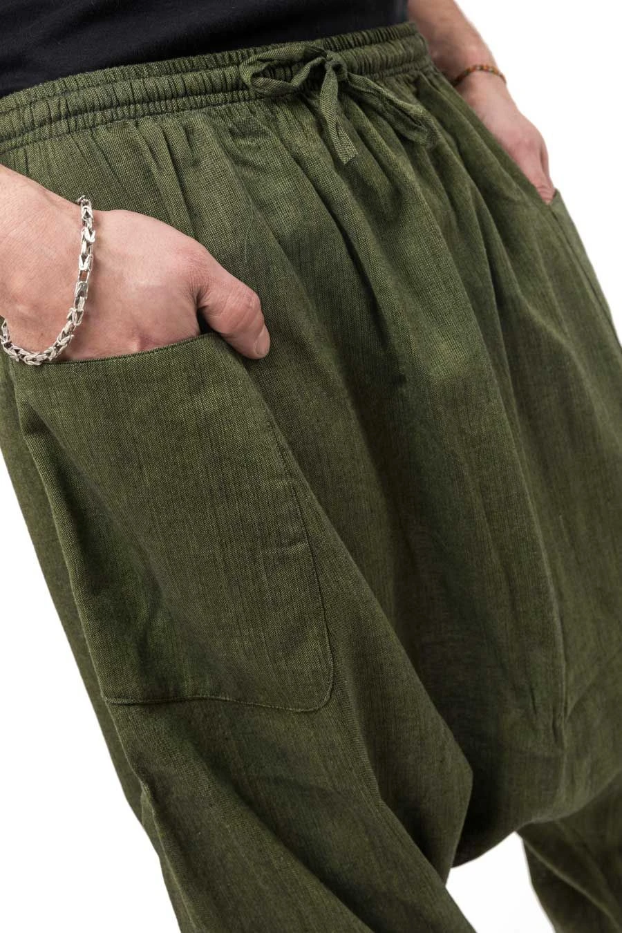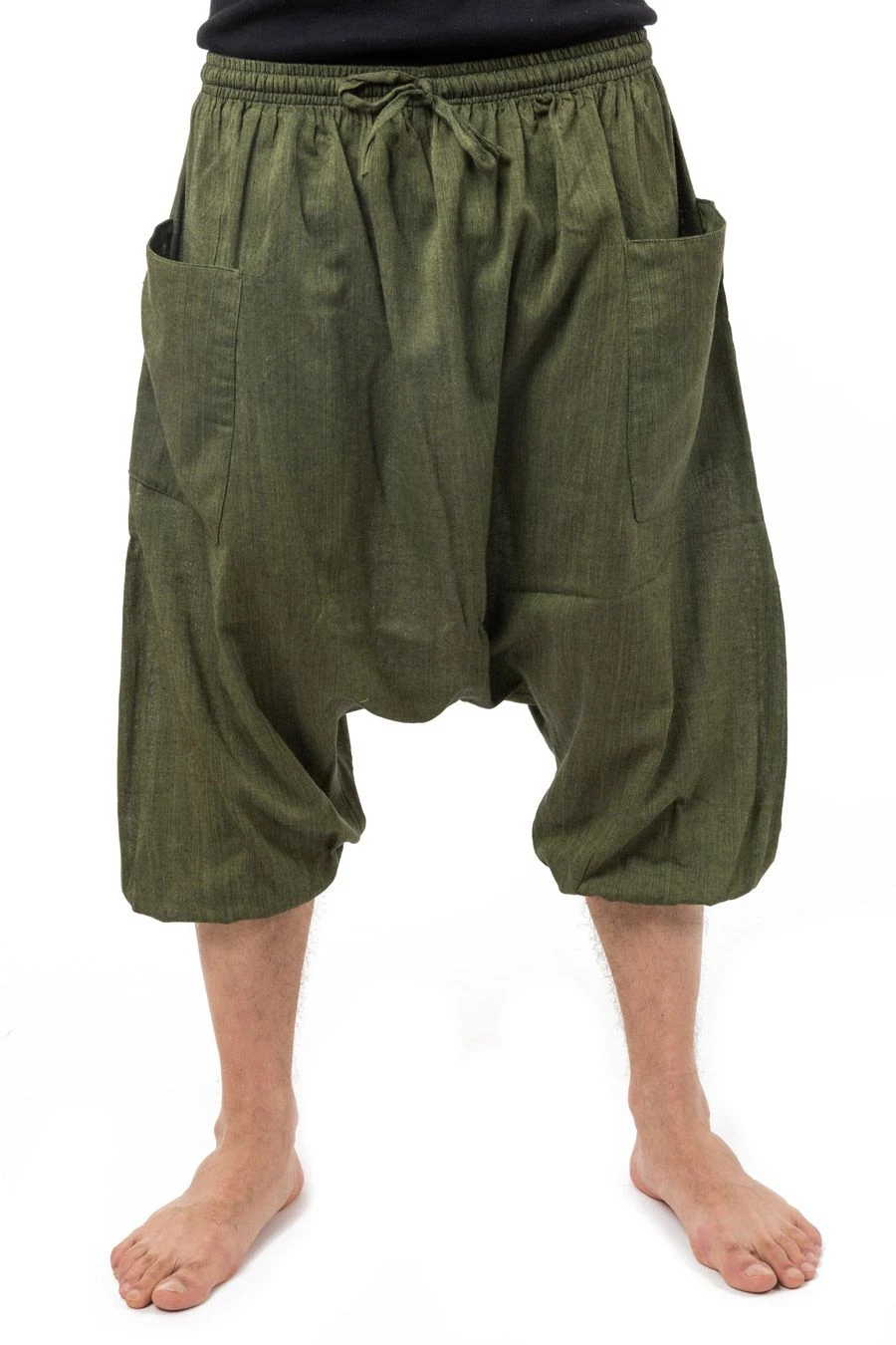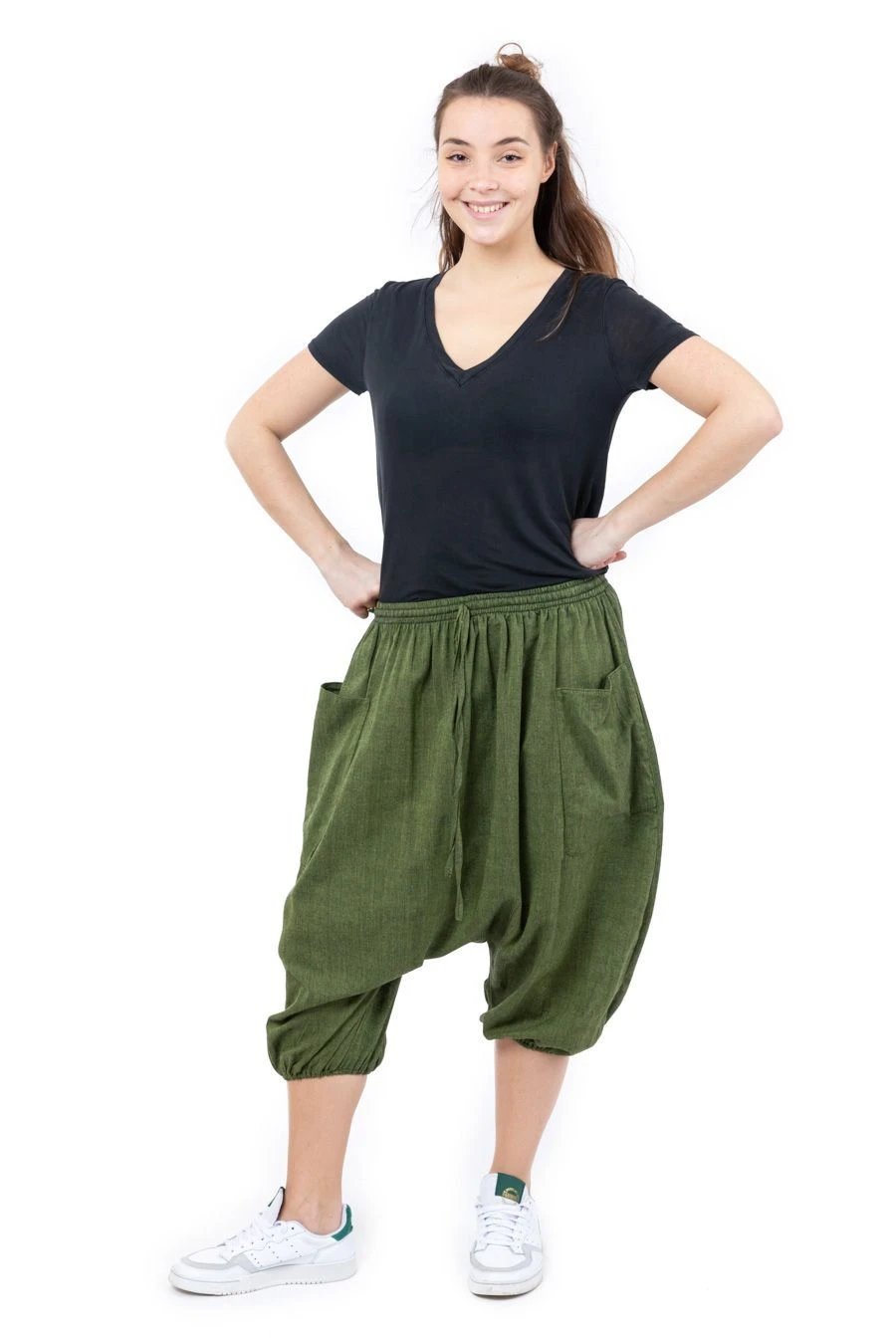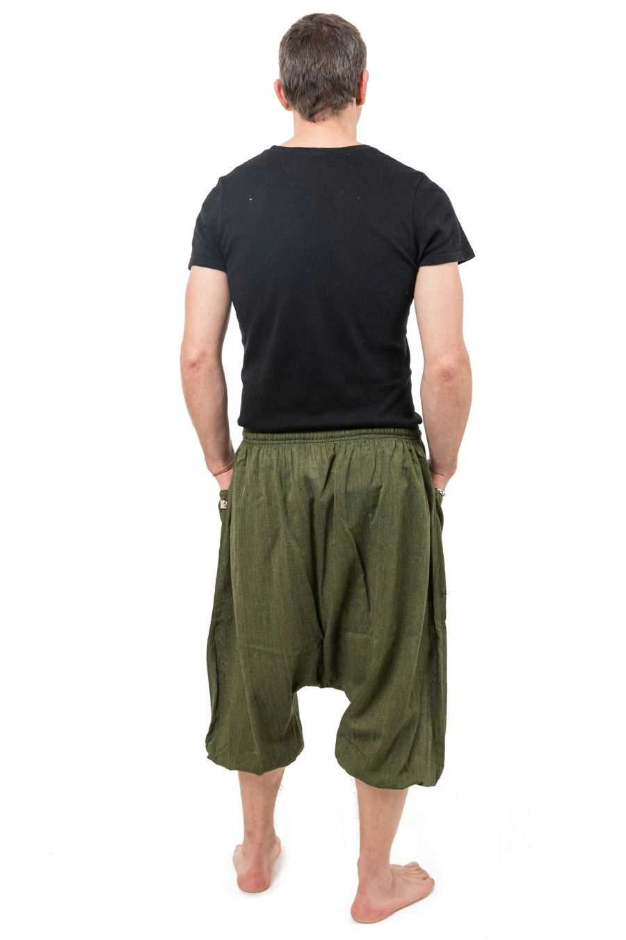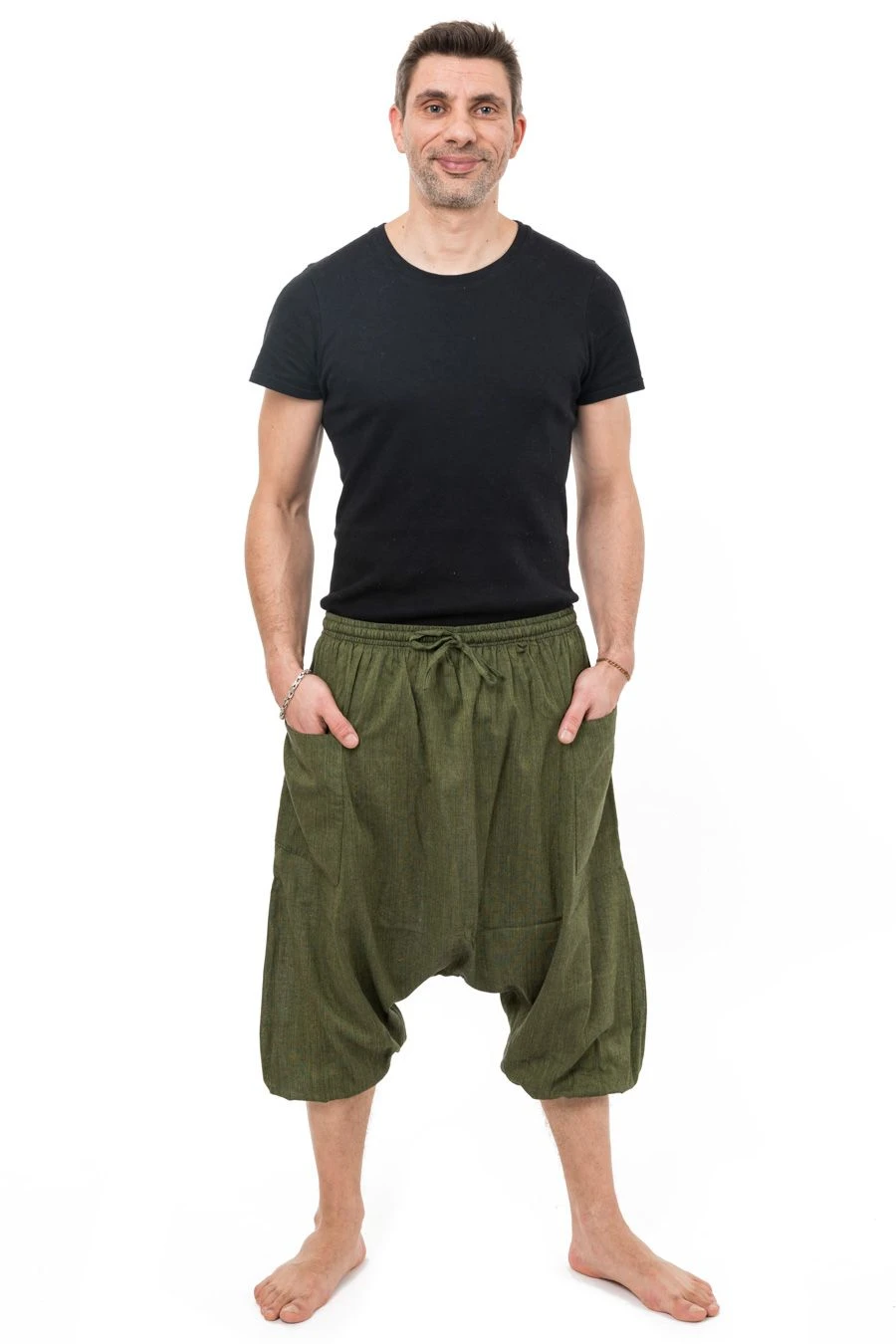 Sarouel trois quarts bermuda homme Kaki Cool – K2626 – 100% coton khadar léger du Népal tissé comme du lin.