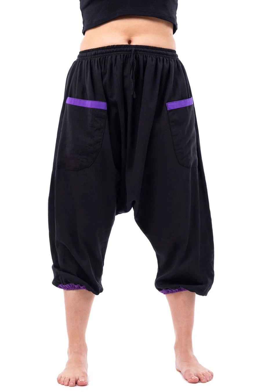 Sarouel bermuda pantacourt mixte Dipurple – K3815 – 100% coton khadar doux et léger du Népal tissé comme du lin.