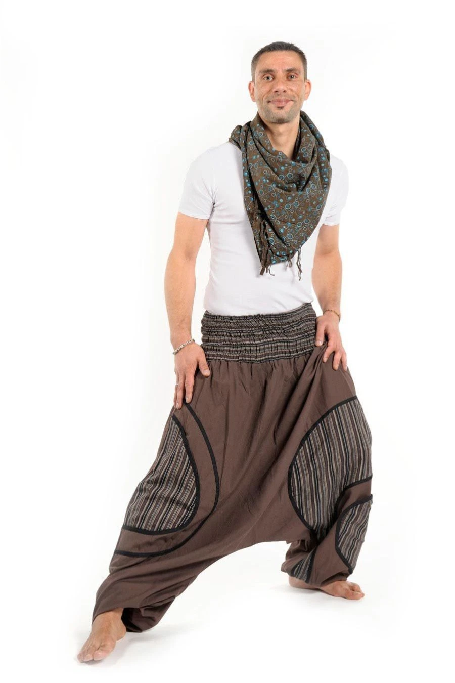 Sarouel elastique grande taille Djecky brown – K1664 – 100% pur coton du Népal.