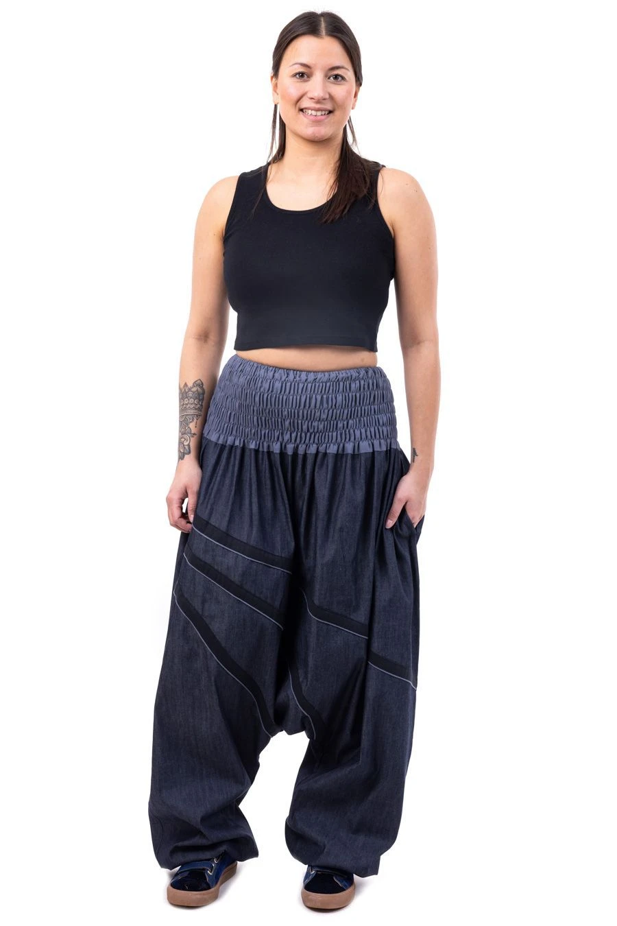 Sarouel large grande taille Hiphop Bronx – K3822 – 100% pur jean et coton doux du NĂ©pal. Toutes saisons.