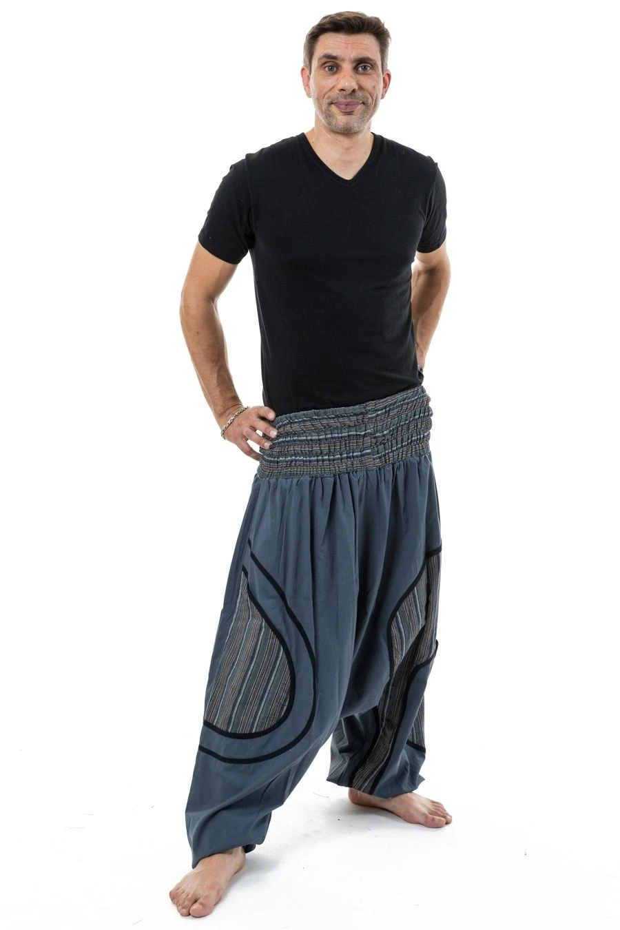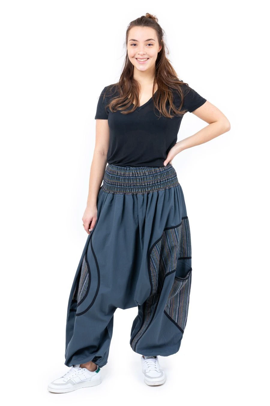 Pour homme comme pour femme, ce pantalon sarwel ample, hyper pratique avec ses 2 grandes poches, est idéal pour les morphologies généreuses et les ventres ronds qui peuvent évoluer sans souci. Prêtez-le ou empruntez-le facilement, il s’adapte à tous, du 34 au 54 !