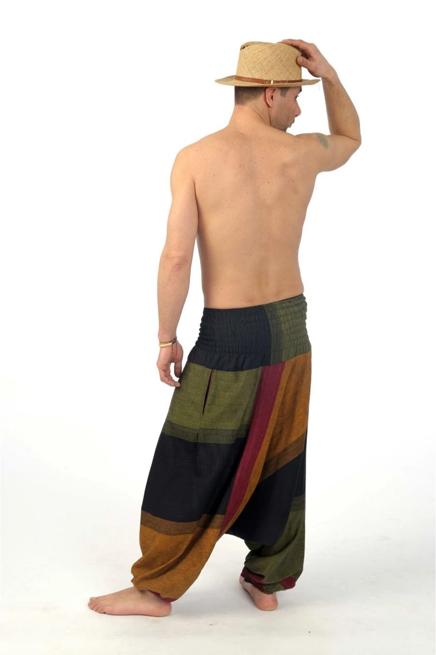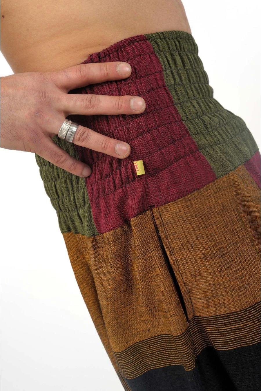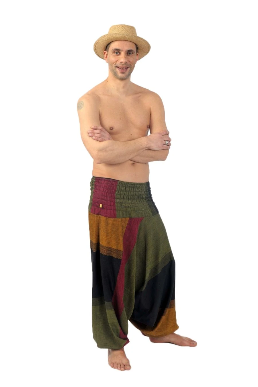 Sarouel homme femme élastique teufer Mahabharat  – FZ1500 – 100% coton lĂ©ger et doux du NĂ©pal tissĂ© comme du lin. Mi-saison printemps Ă©tĂ©.