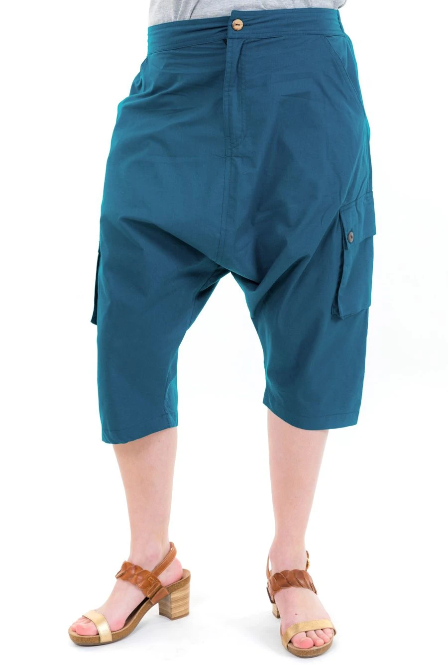 Sarouel bermuda cargo mixte pétrole – FZ2964B – 100% coton popeline doux et léger du Népal.