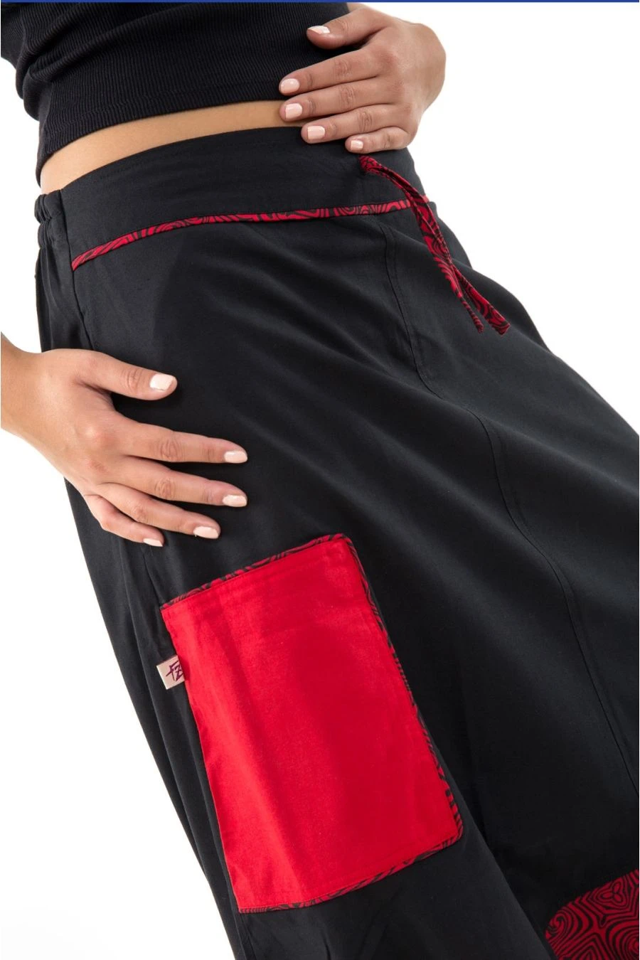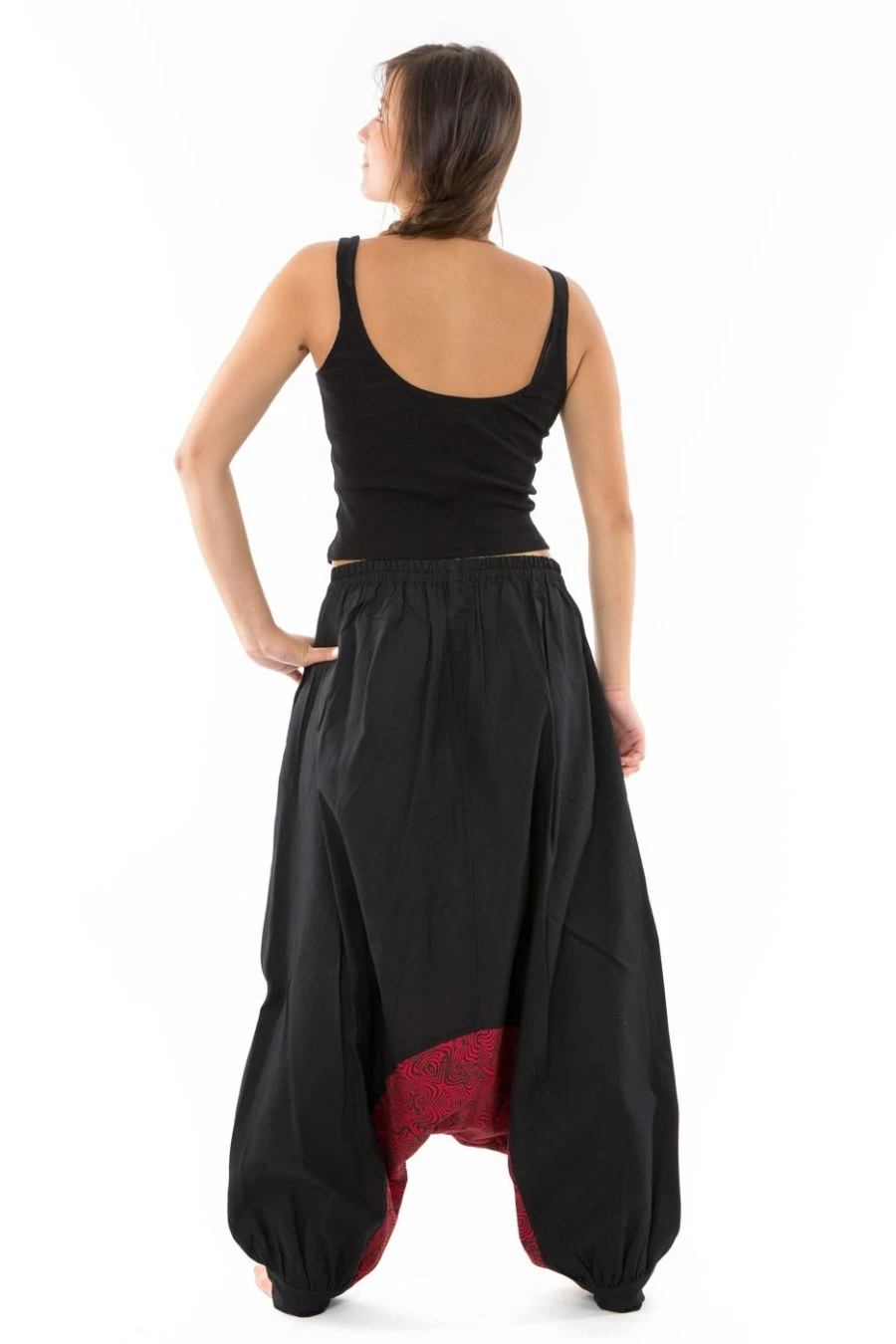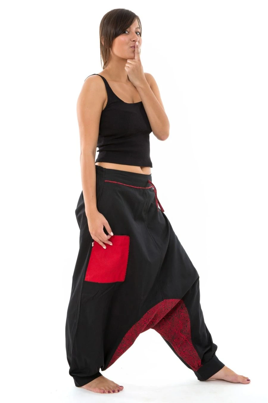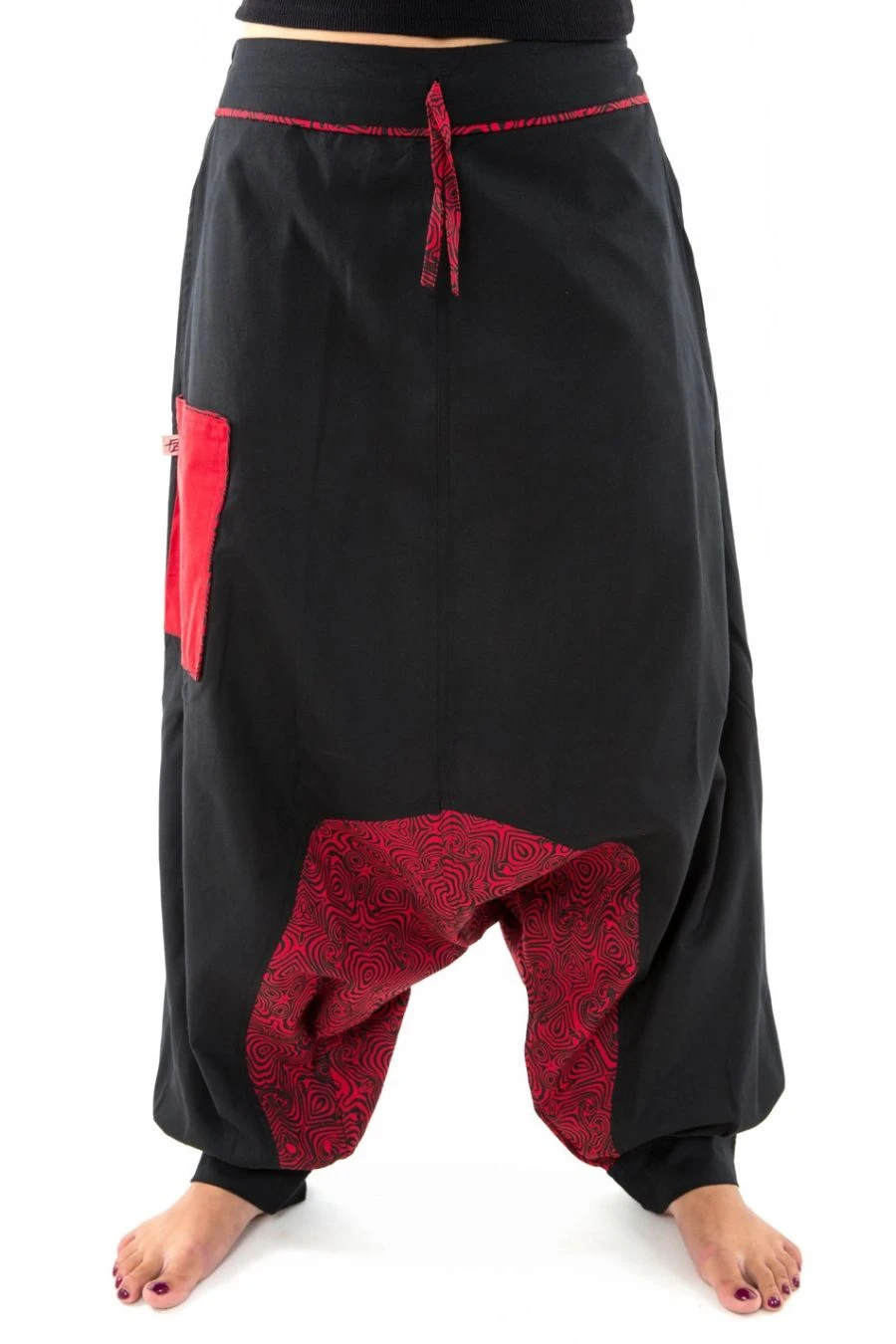 Sarouel aladin ethnic psychedelic noir rouge hiver – FZ1823 – 100% pur coton Ă©pais du NĂ©pal.