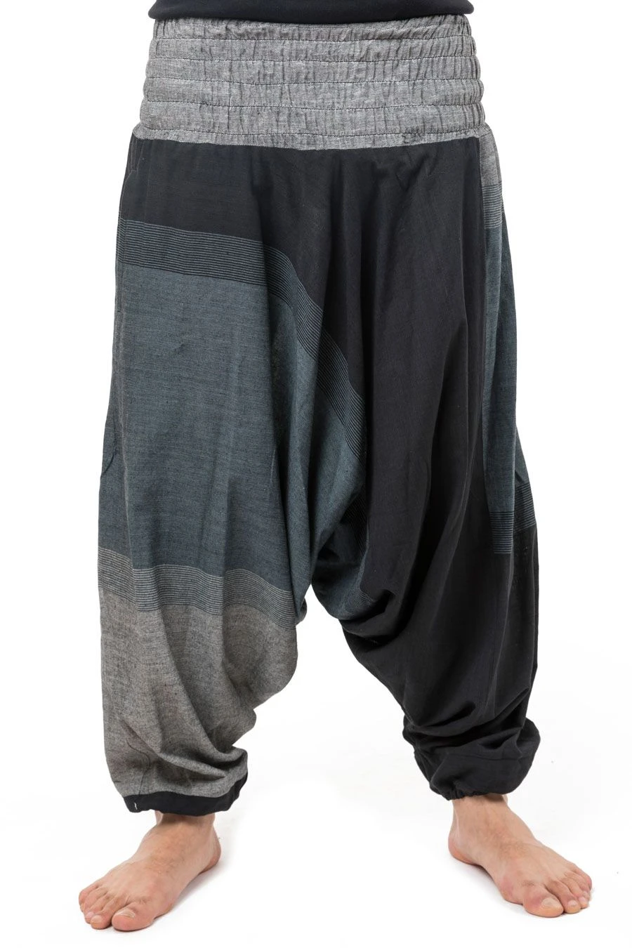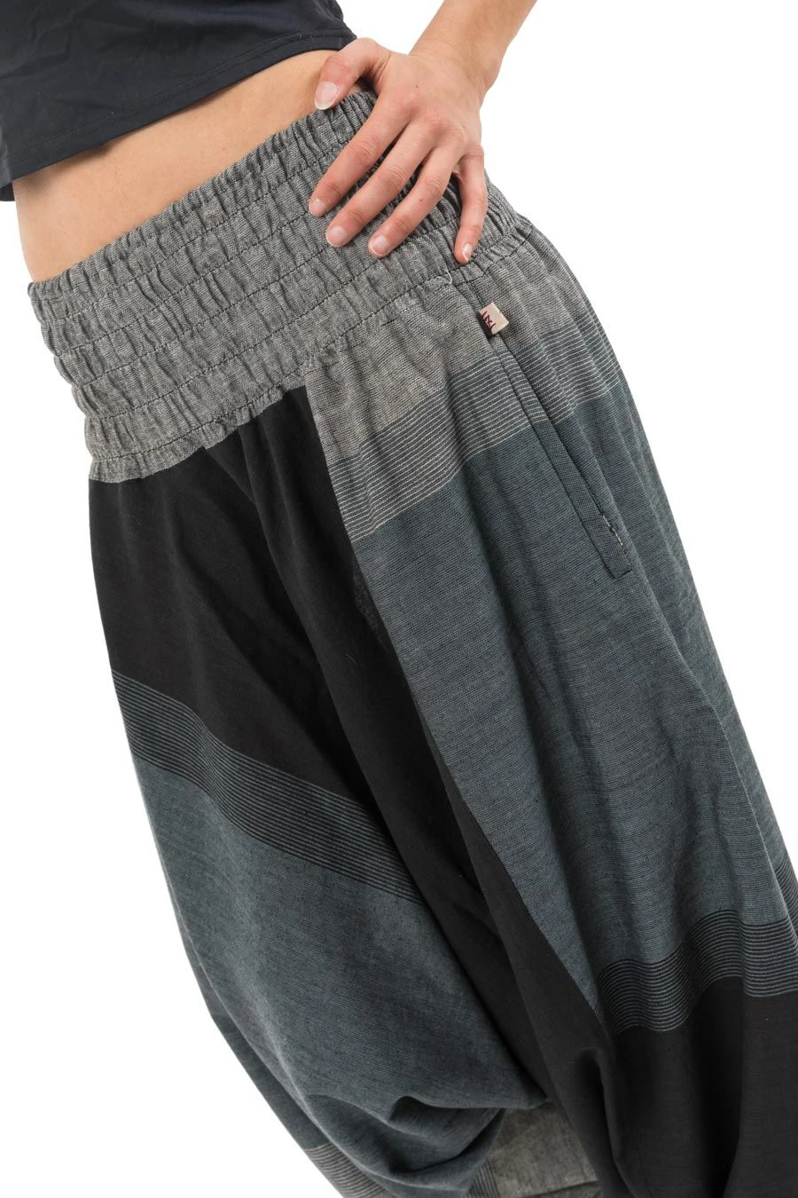Sarouel mixte style baba zen noir gris Tigah – K2640 – 100% pur coton léger et doux du Népal tissé comme du lin.