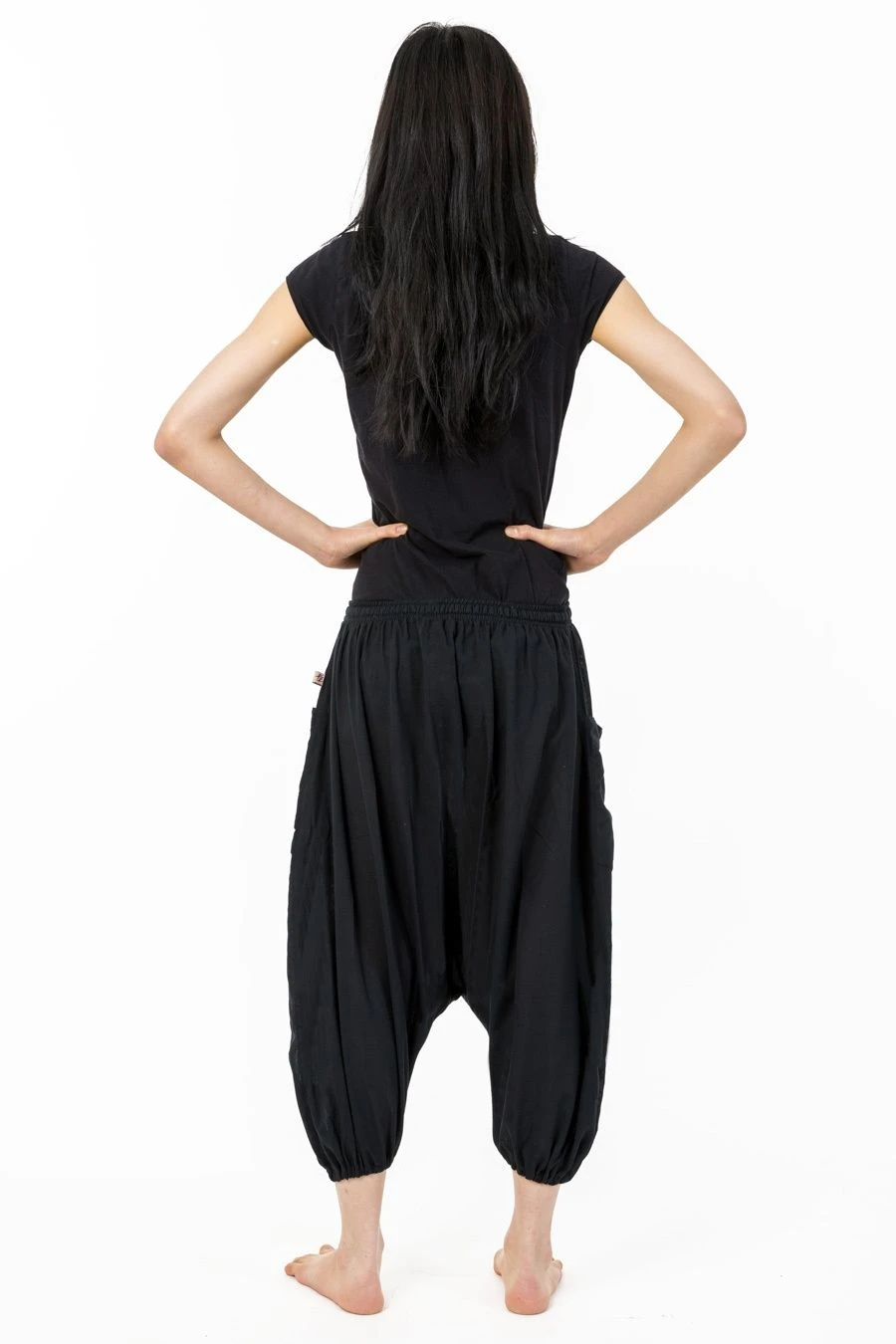 Sarouel pantacourt grande taille coton léger noir uni – K1905 – 100% pur coton léger du Népal tissé comme du lin. Printemps été.
