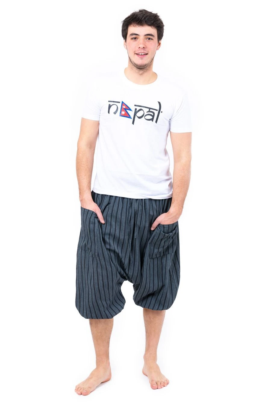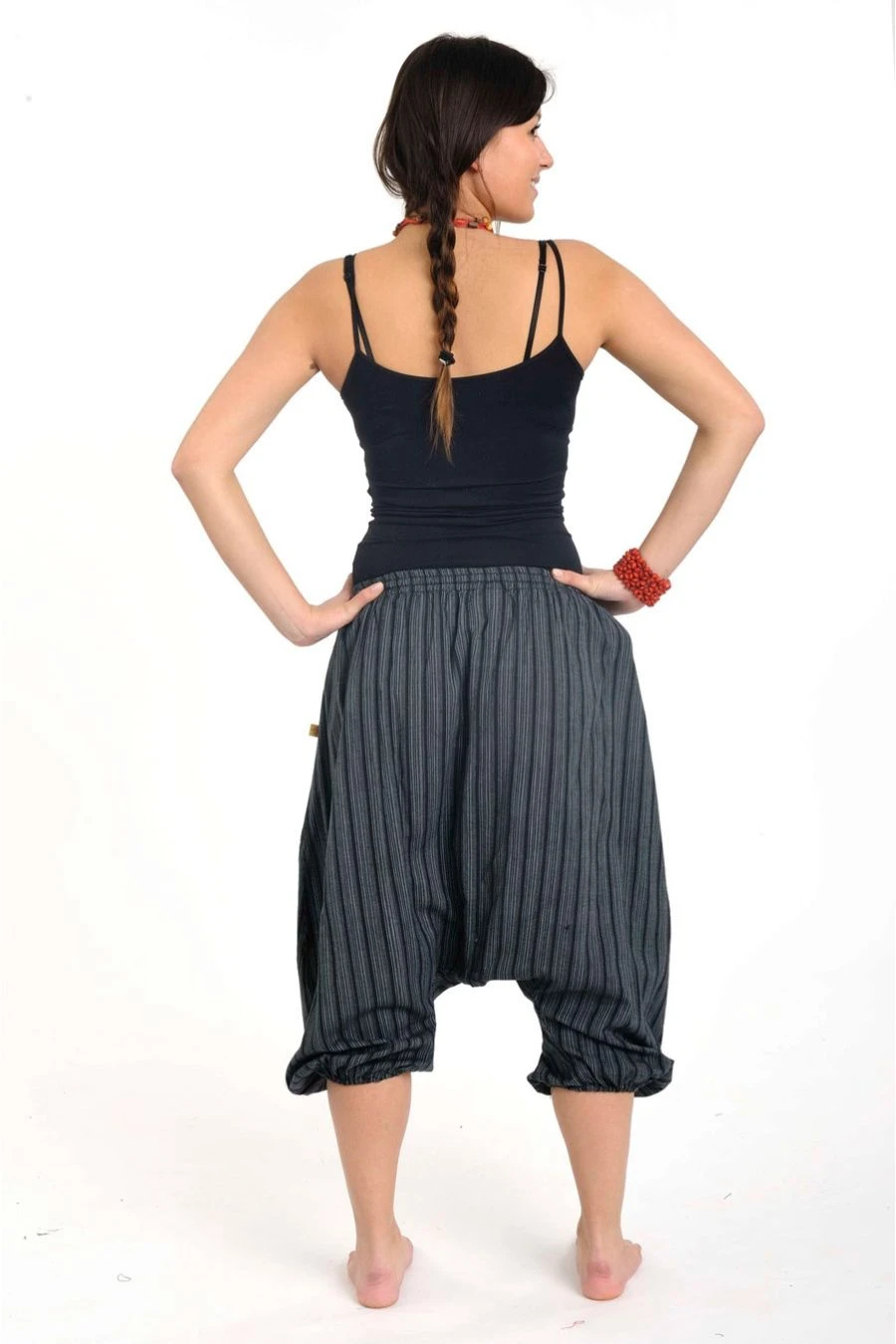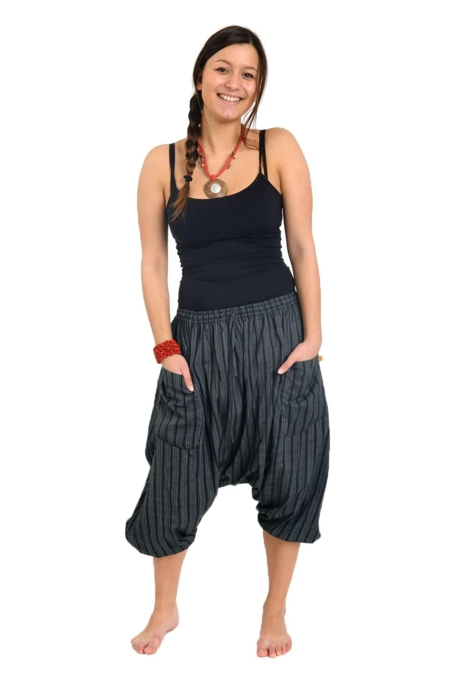 Sarouel pantacourt léger Venkat noir gris – K1558 – 100% pur coton léger du Népal.