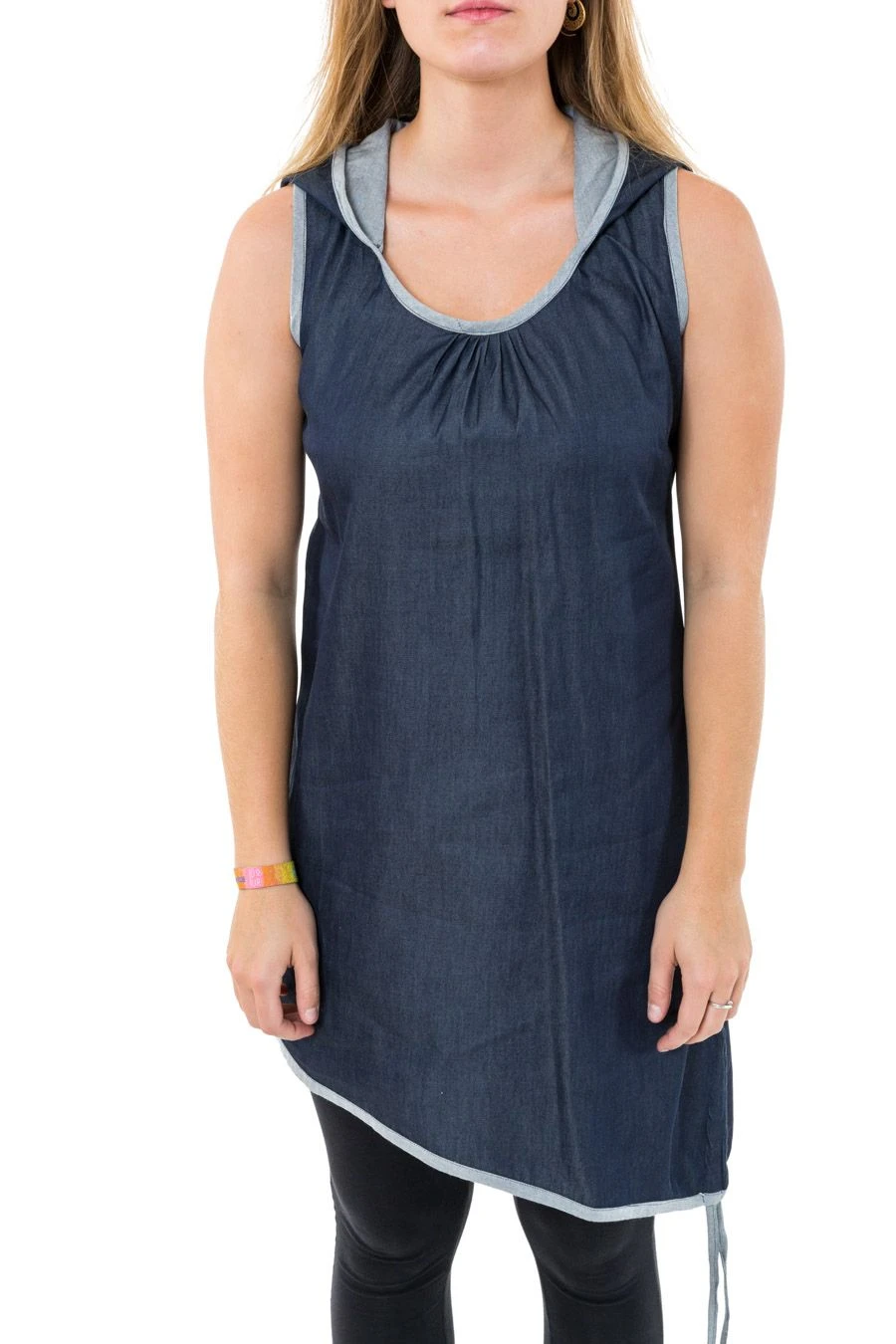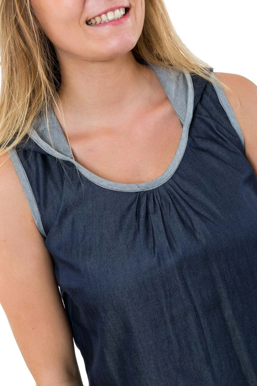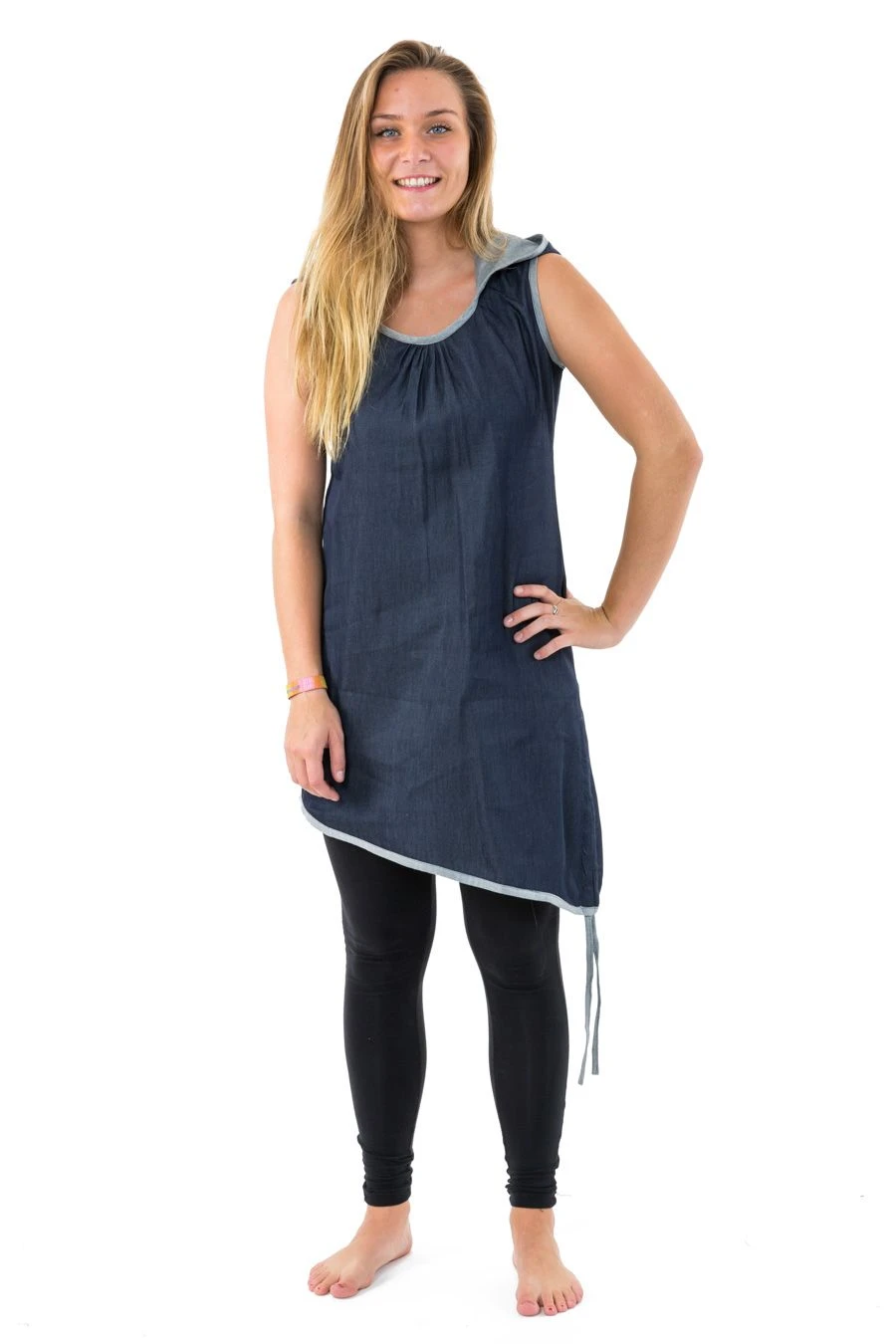 Tunique robe courte jean denim sans manche capuche de lutin Gina – FZ2303 – 100% pur coton nĂ©palais.
